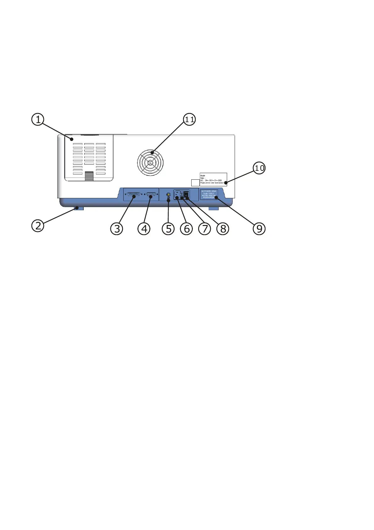 Side view is shown as Fig.1.4. There is no other interfaces or labels except the ventilation grills.