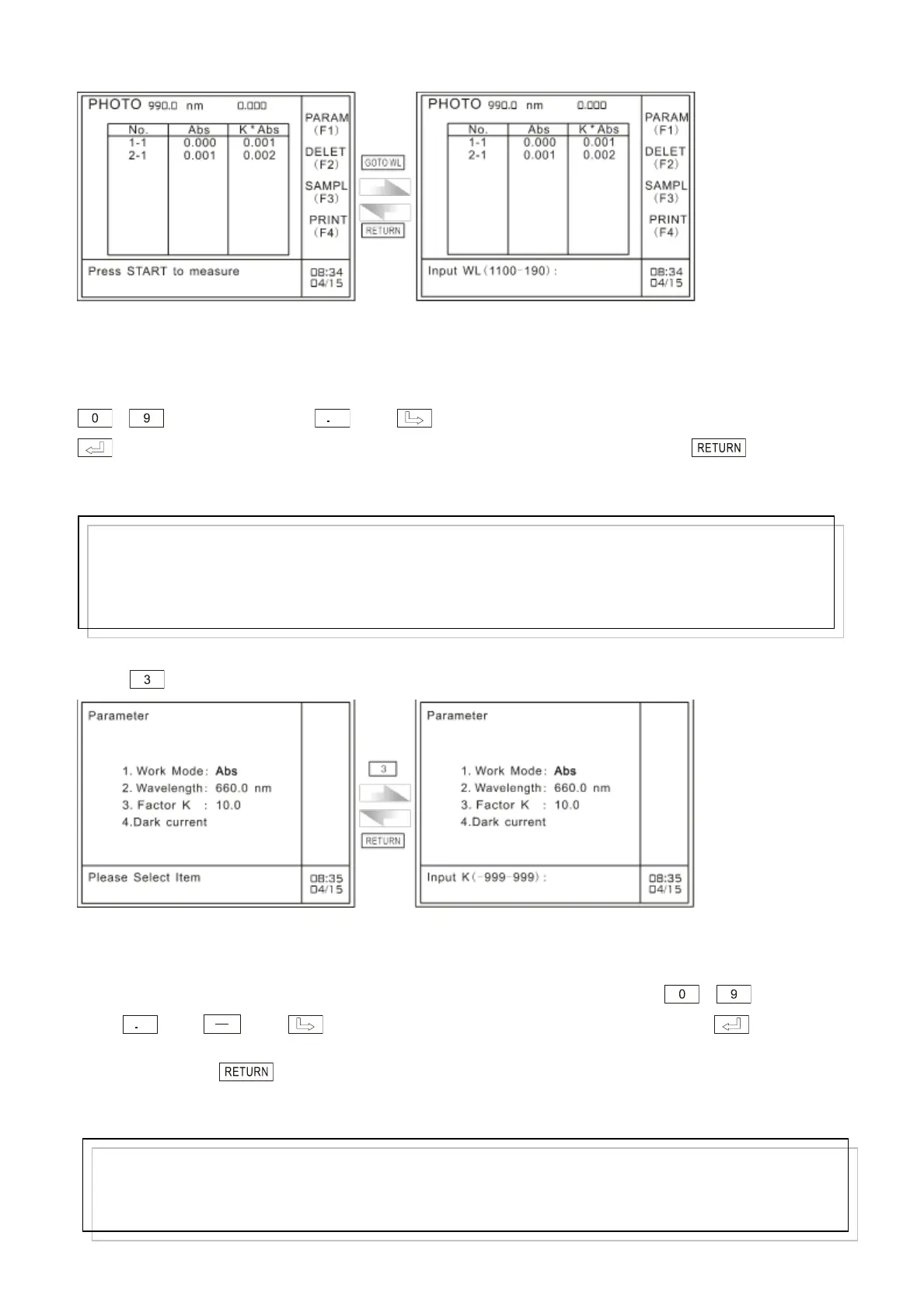 be entered, press key to quit this page and return to parameters setting page in photometric