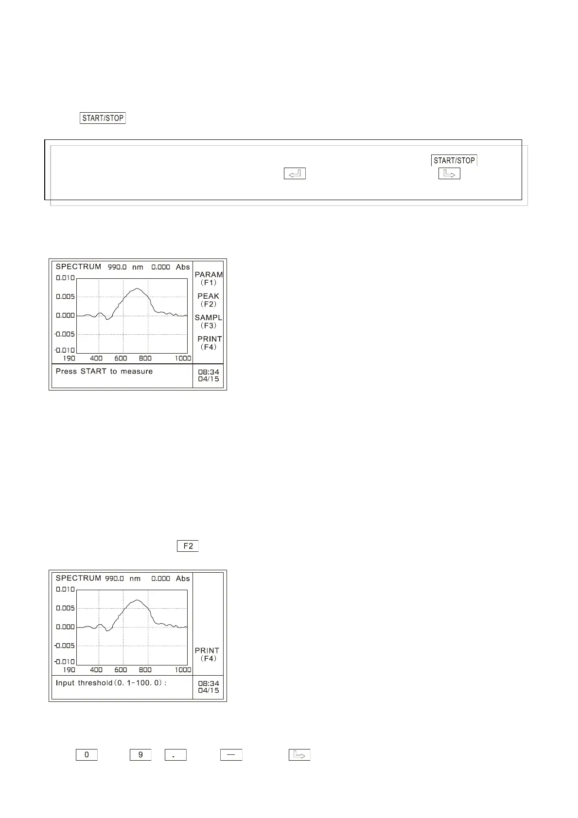 After measurement, press to perform peak picking on the main menu of spectrum scanning, as