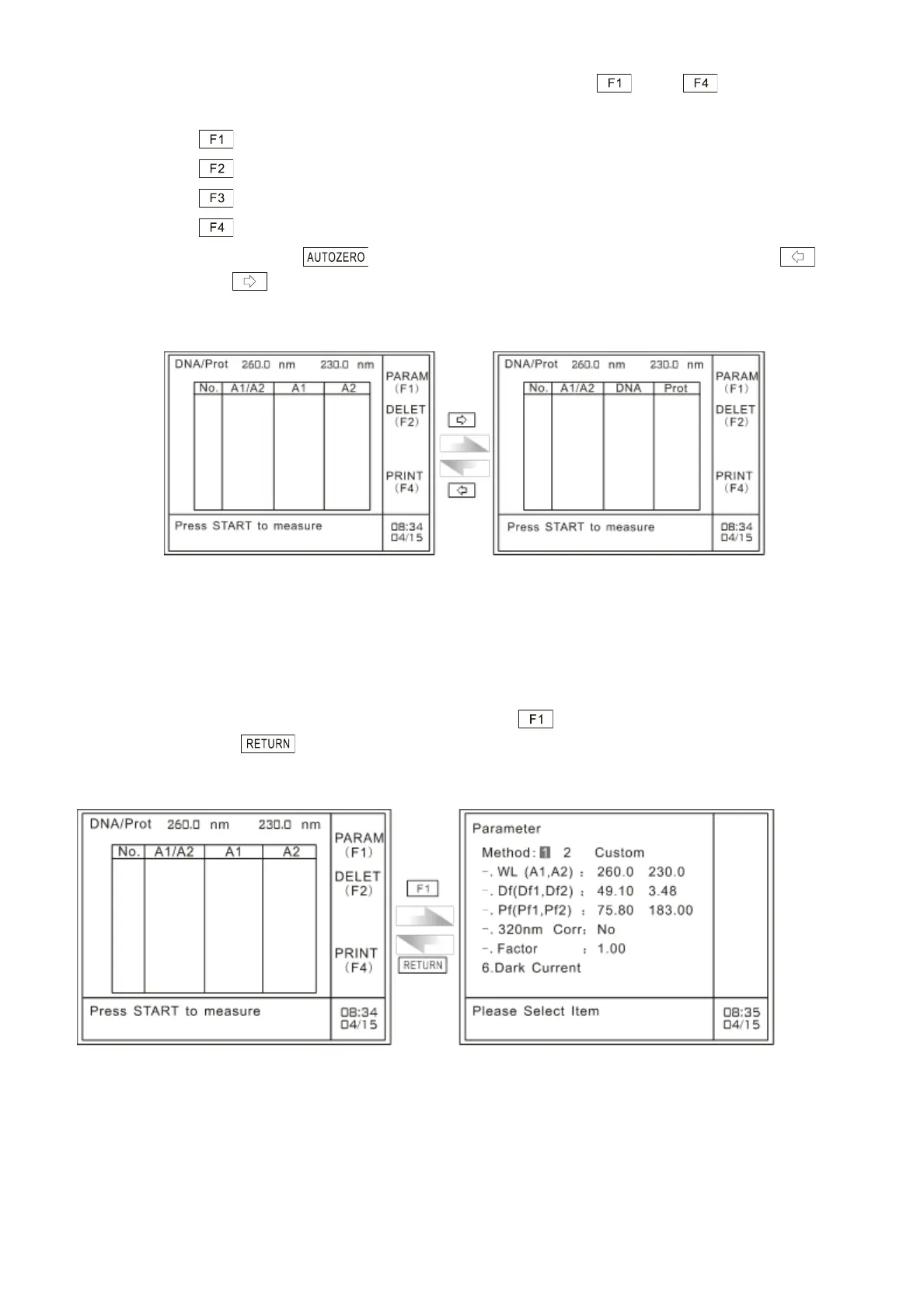 On the main menu of DNA/Protein analysis, please press to gain access to the parameters