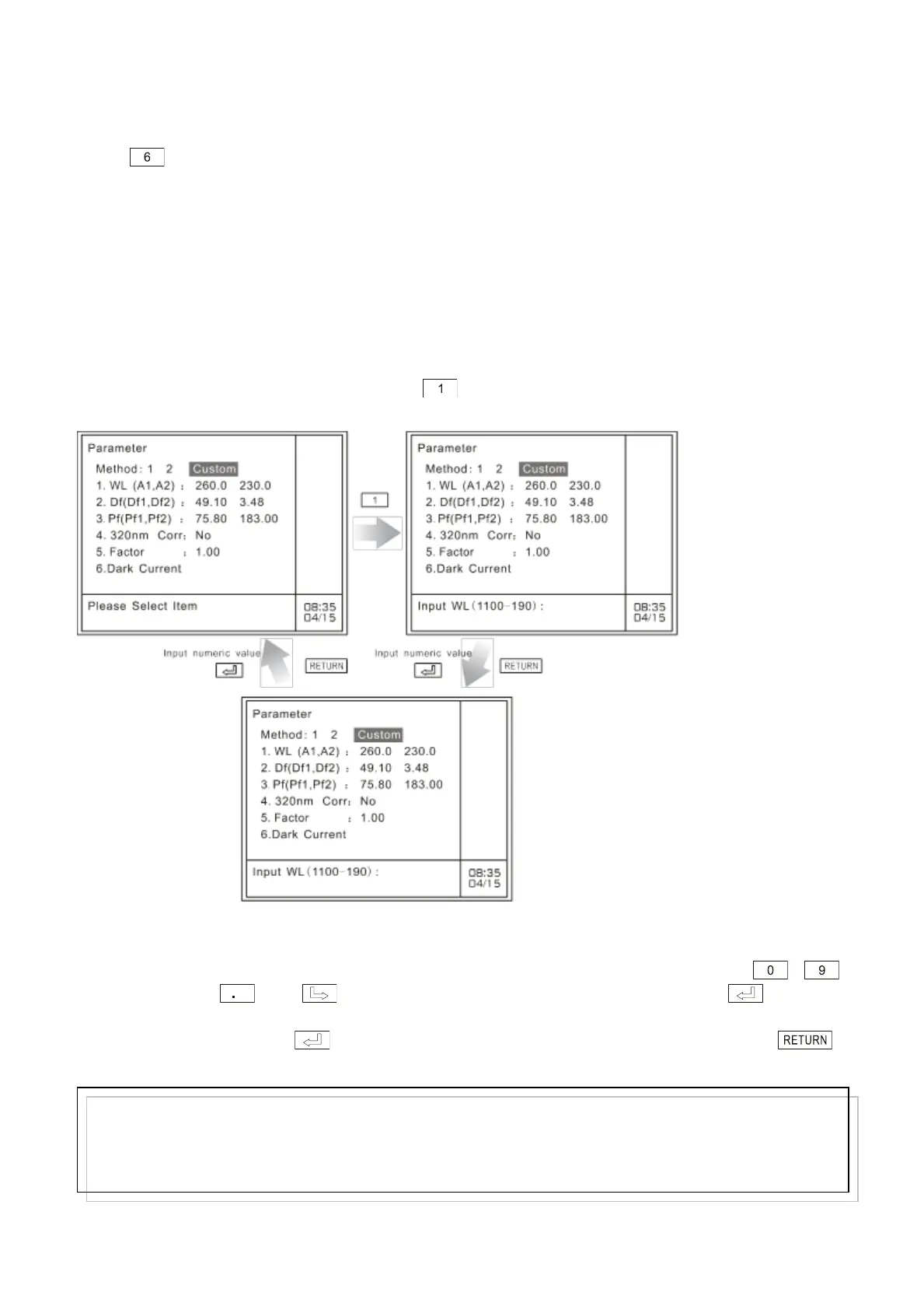 In the case of custom defined method, press key to set working wavelength, as shown in Fig.