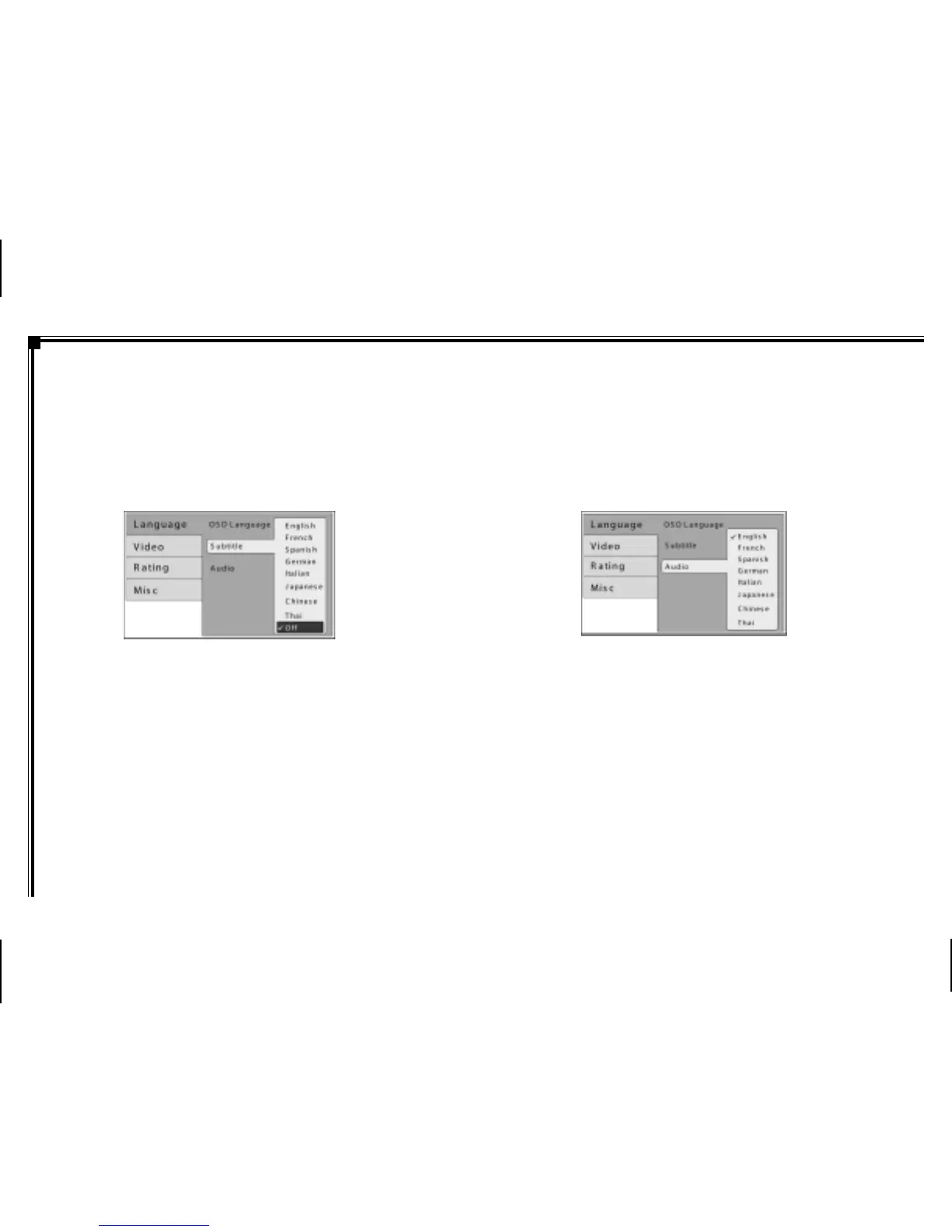 The AUDIO Menu allows the user to select the language of the