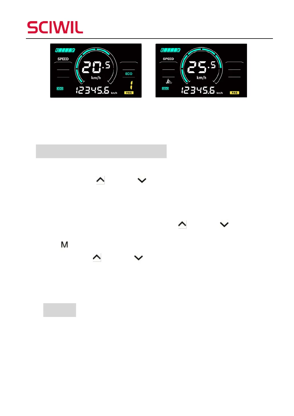 1. Press and hold Up and Down together for 2s to enter the settings