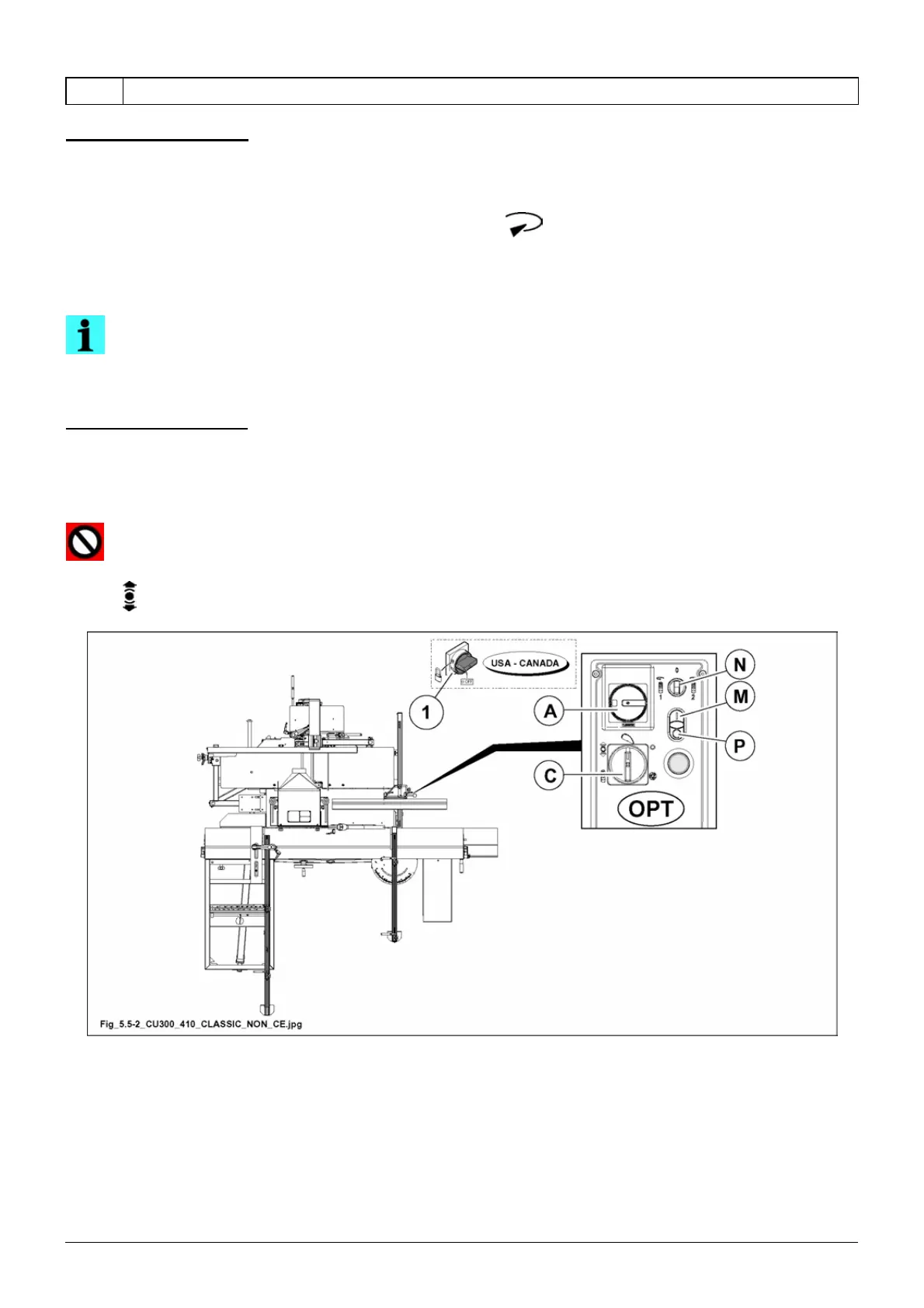 (U.S.A. and CANADA) it is forbidden to stop the moulder motor by turning selector (C fig. 5.5-2) to