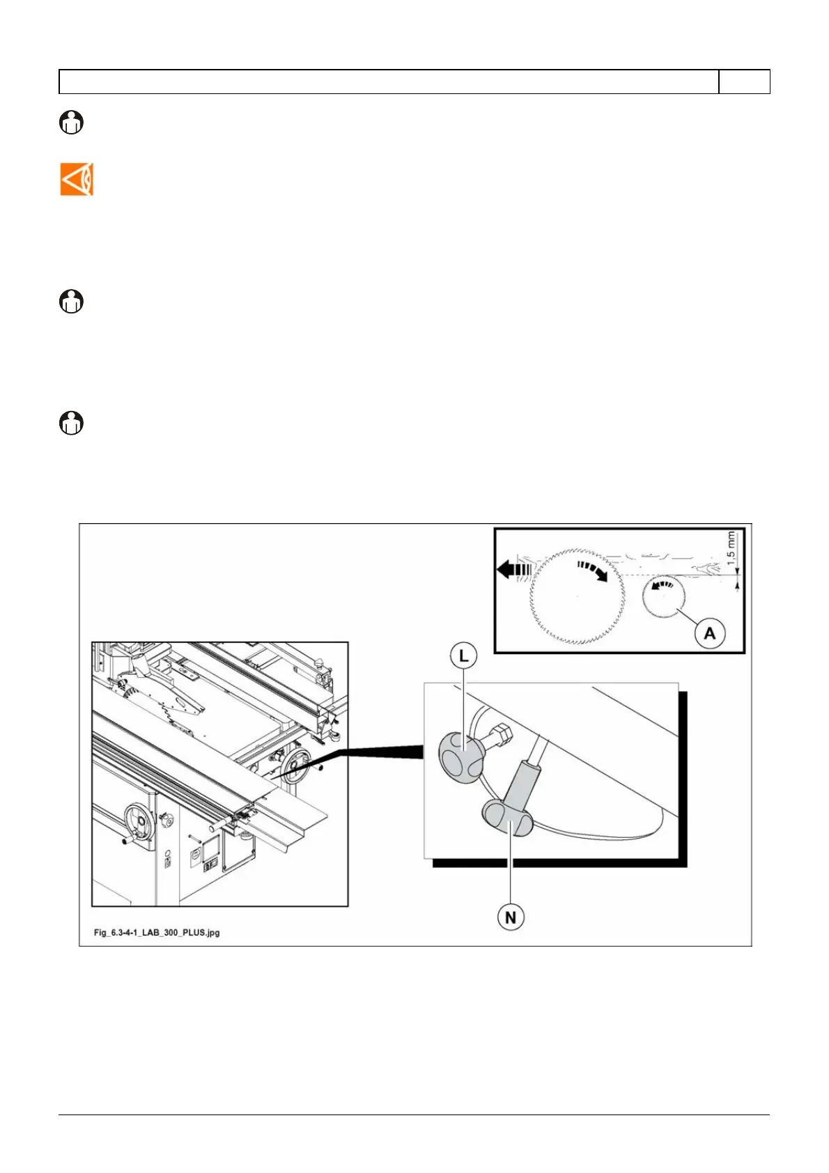 - adjust scoring saw height using the knob (L fig. 6.3-4-1).