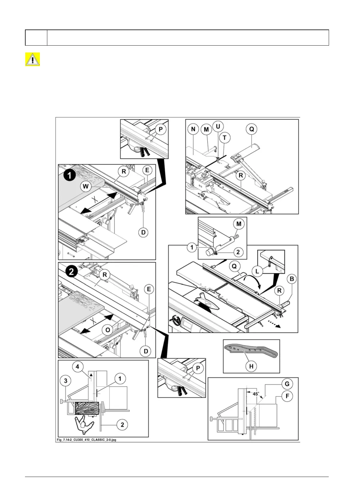 7.14.2) must be positioned before the front end of the blade (1 fig. 7.14.2) or not in contact with the