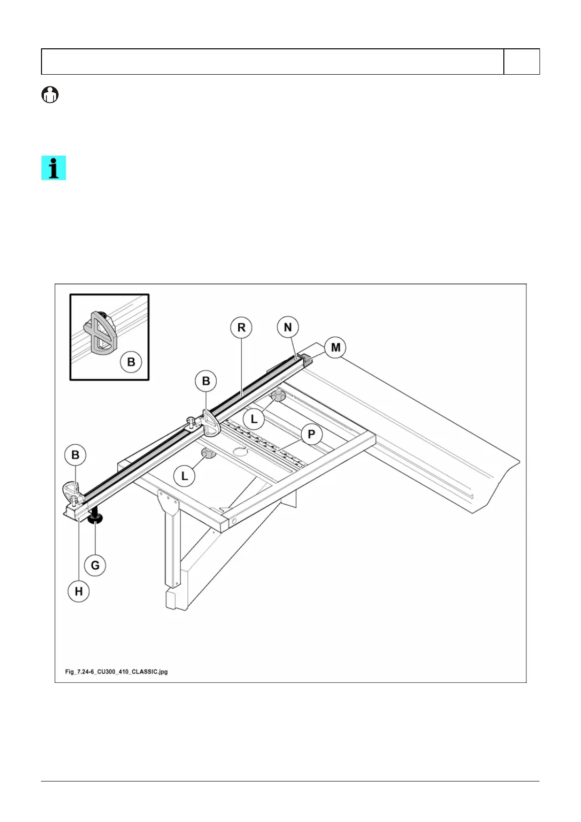 - For use, position the ruler referring to the plate (P fig. 7.24-6) and tighten the knobs (L fig. 7.24-6).