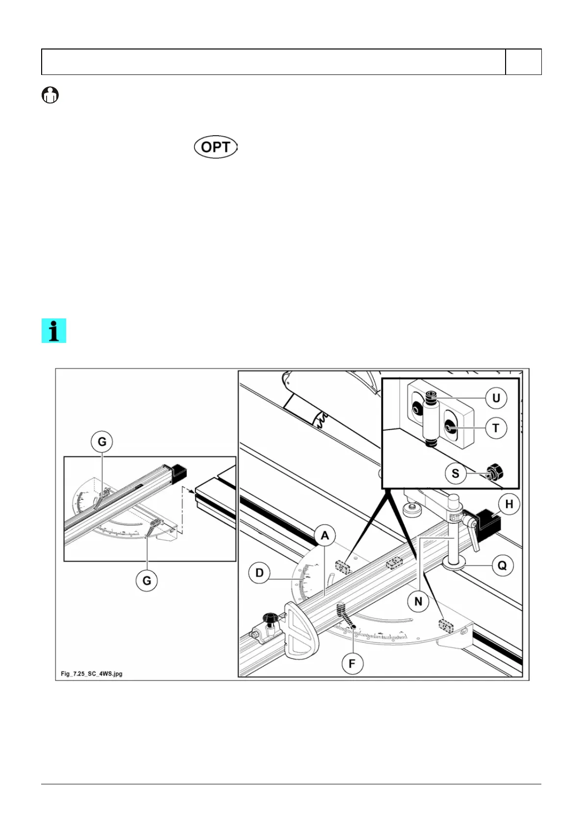 - loosen screws (T fig. 7.25) and move the dowels (U fig. 7.25) to adjust the height position.