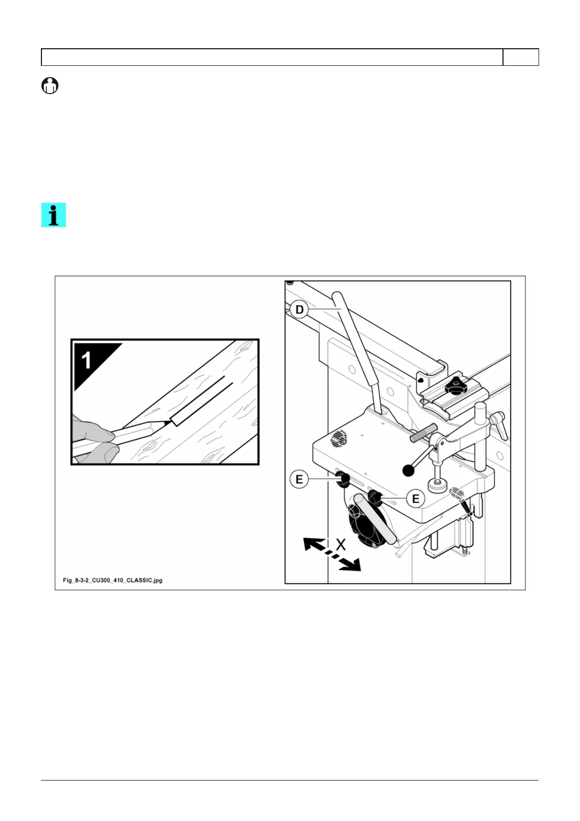 - Test the transversal stroke using lever (D fig. 8.3-2) according to the mortise to be cut and adjust the side