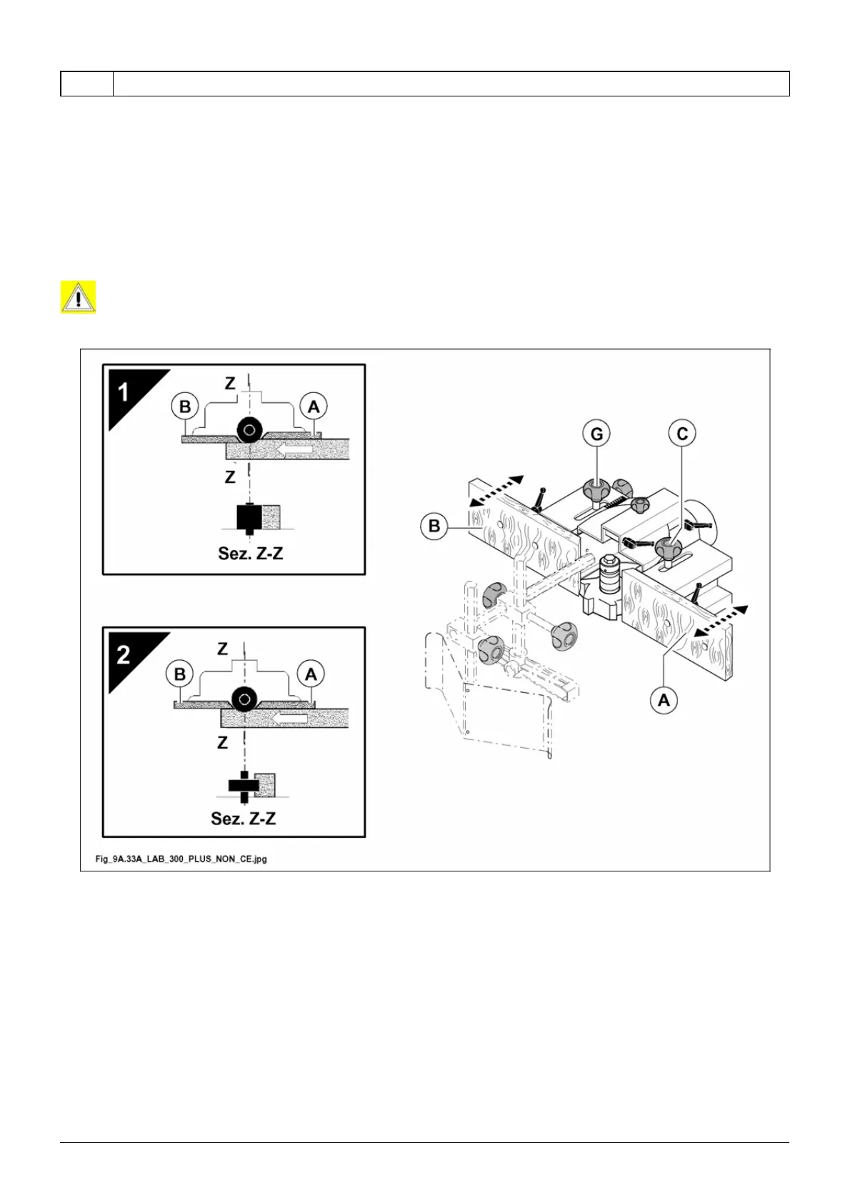 Position the hood on the working table and screw the two knobs (C,G fig. 9.33A) into their special holes.