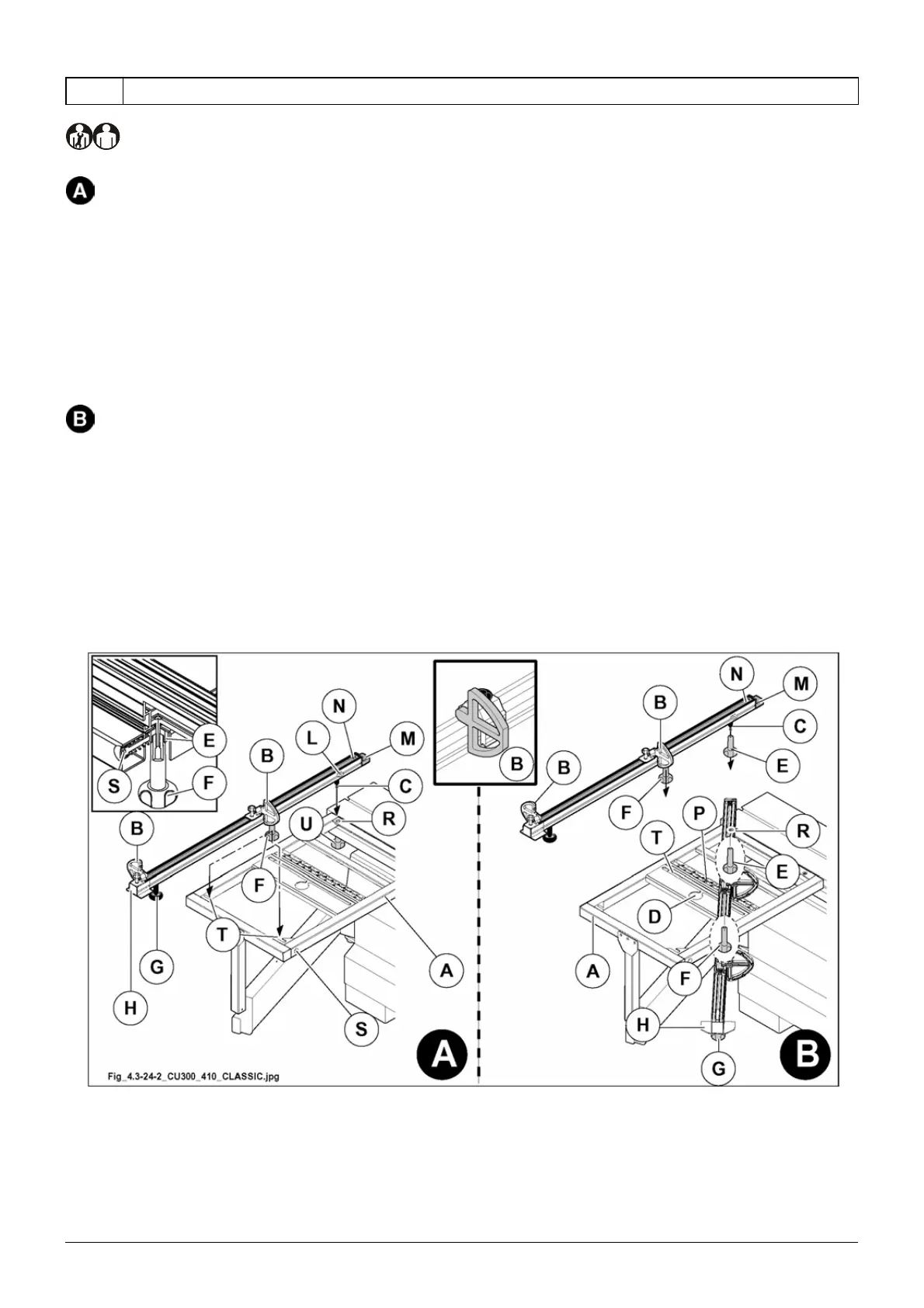 4) Tighten the knobs (F fig. 4.3-24-2) and (U fig. 4.3-24-2).