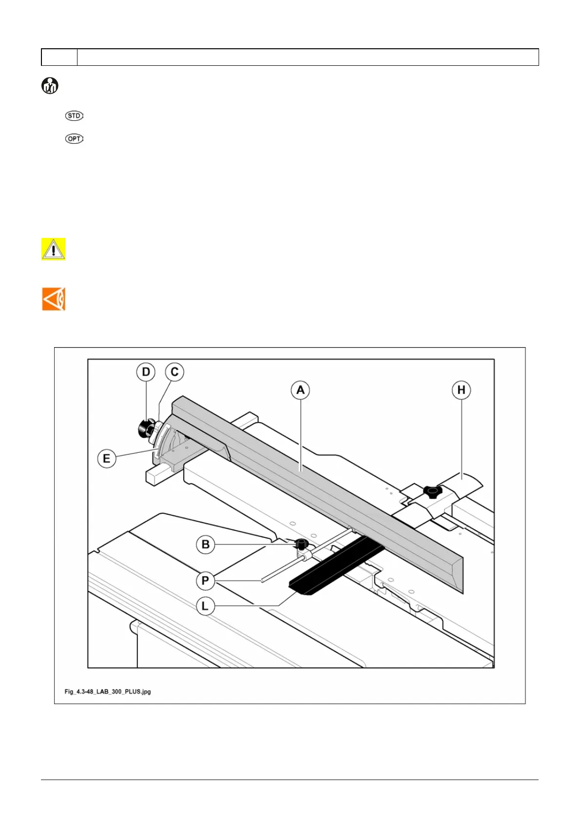 - As soon as the adjustment has been carried out, bring the fence lock (P fig. 4.3-48) to the stop on the