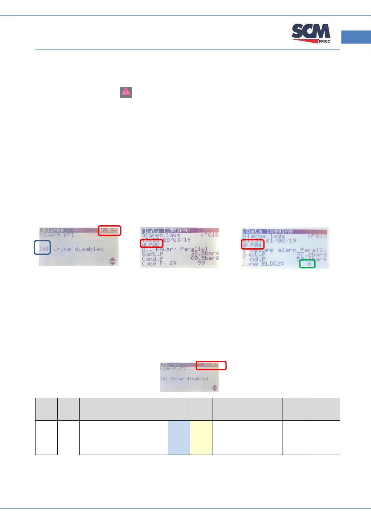 Es folgen einige Details zur Interpretation der verschiedenen Codes, die in den Alarmmasken angezeigt