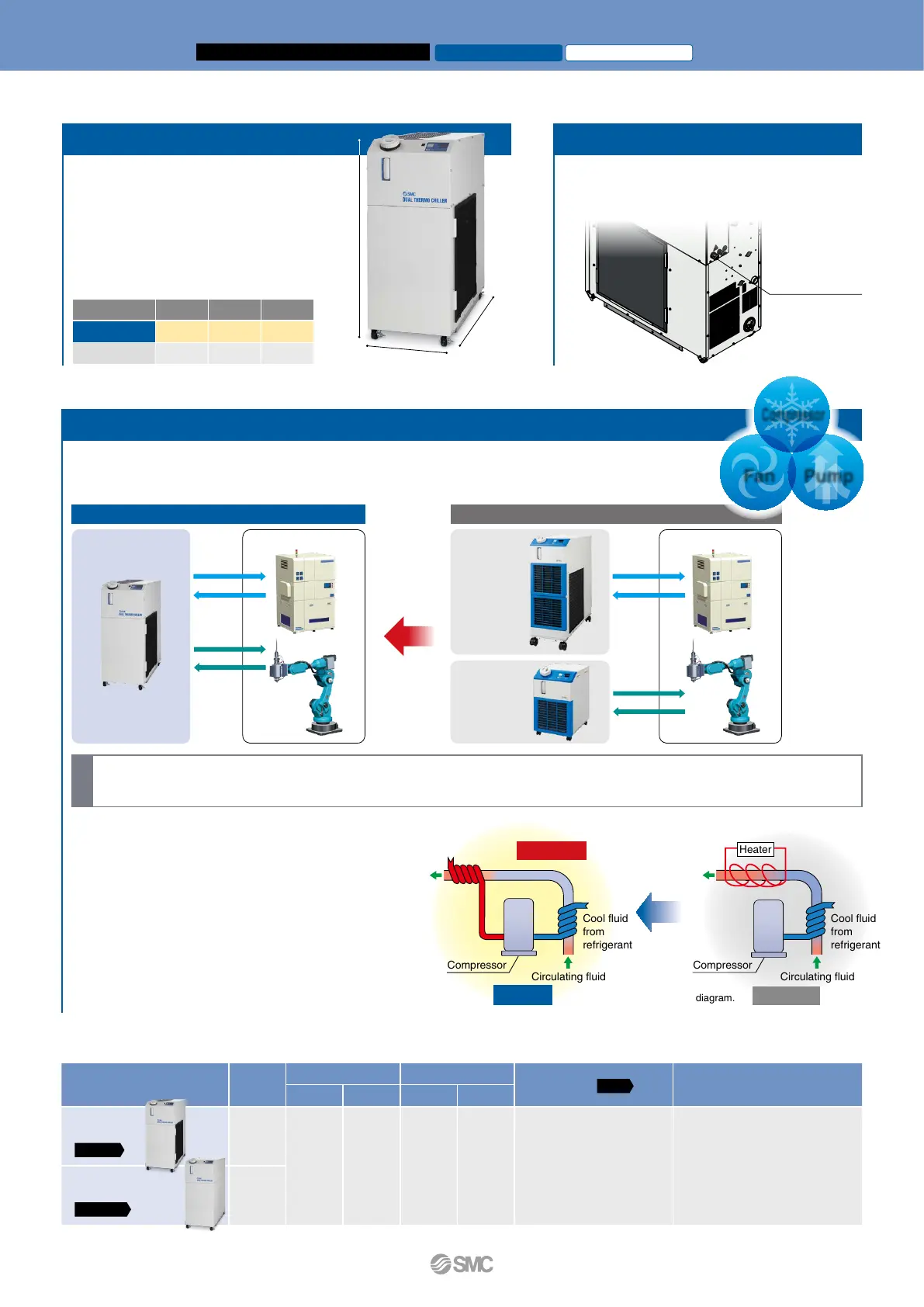 ¡1 compressor, fan, and pump ¡Uses a heating method that does not require a heater
