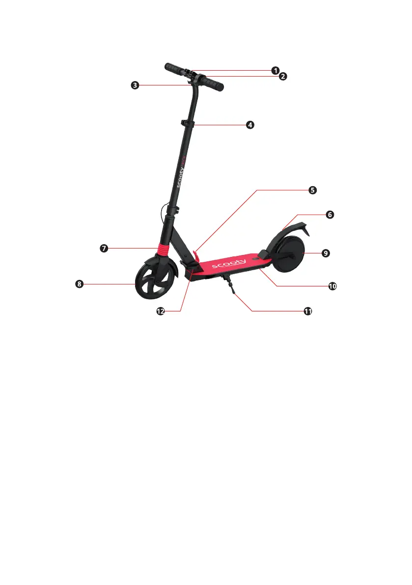 (10). Charging port and on/o button under the scooter (11). Rear brake