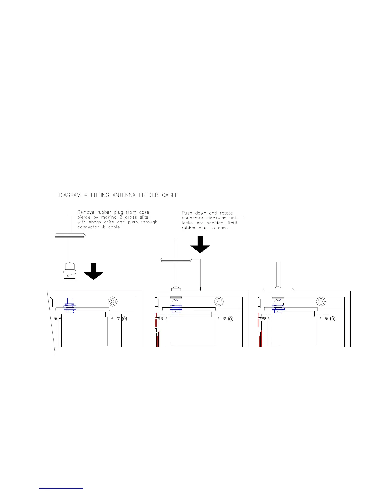 b) Slide the blanking grommet down the shaft of the antenna (or cable) and compress the