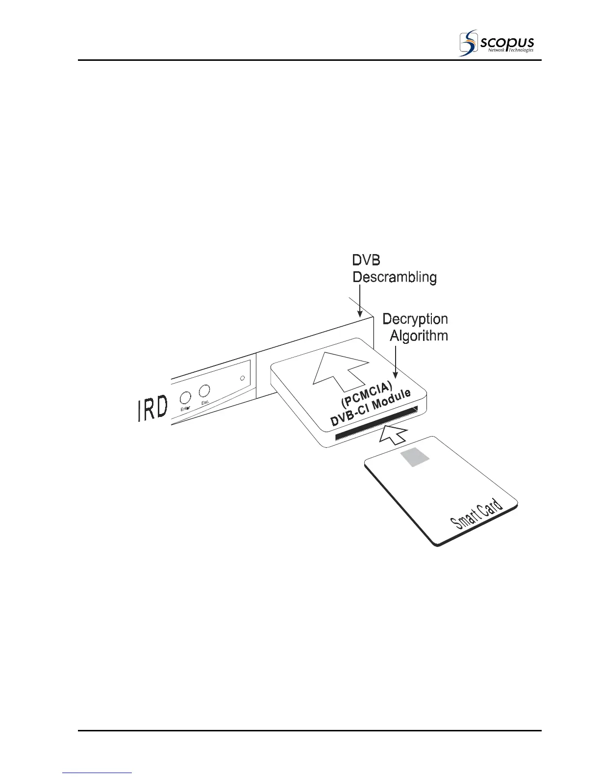 Figure 2-1 shows the IRD with DVB-CI Module (PCMCIA card) and the Smart Card used to