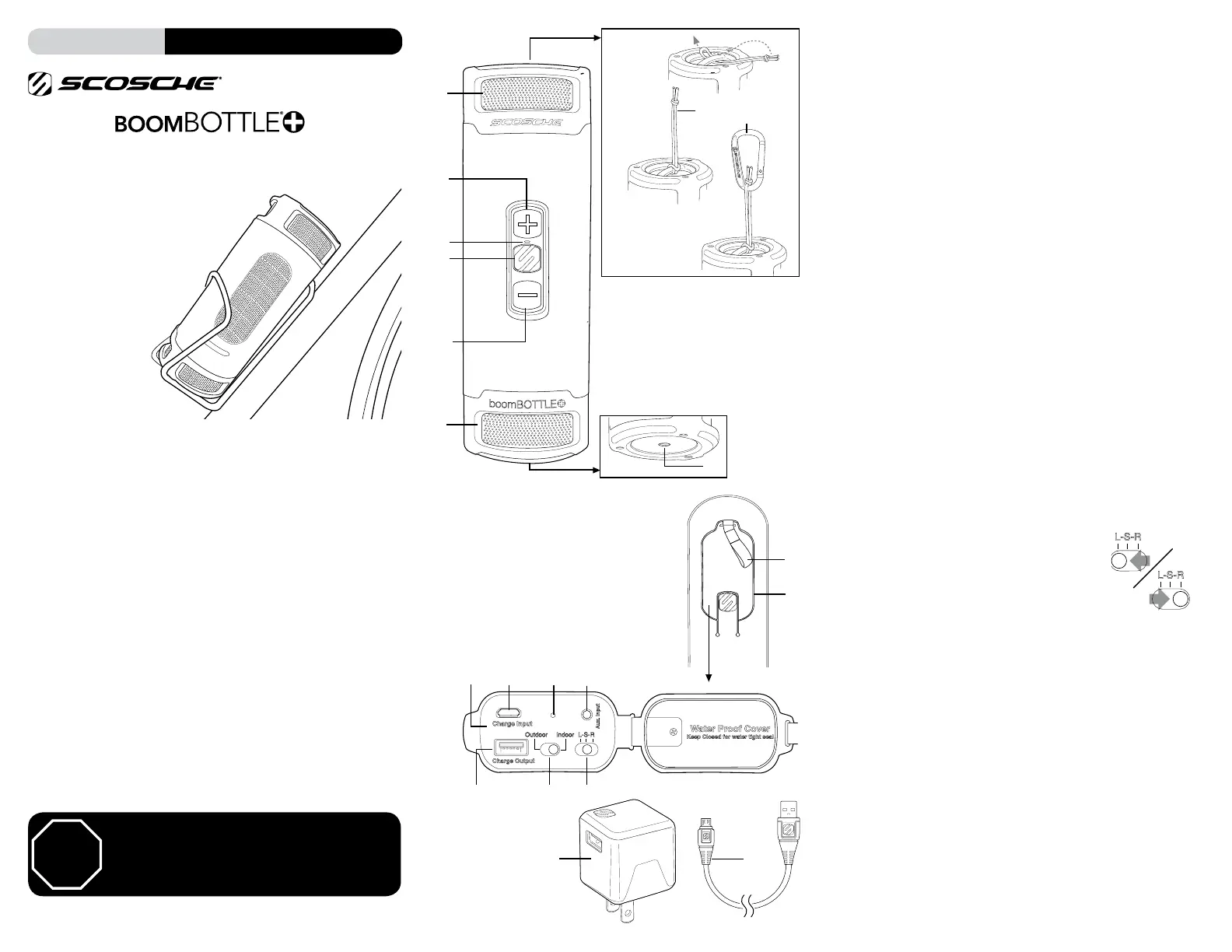 “S” su entrambi gli altoparlanti. Lasciare la copertura impermeabile aperta fino al