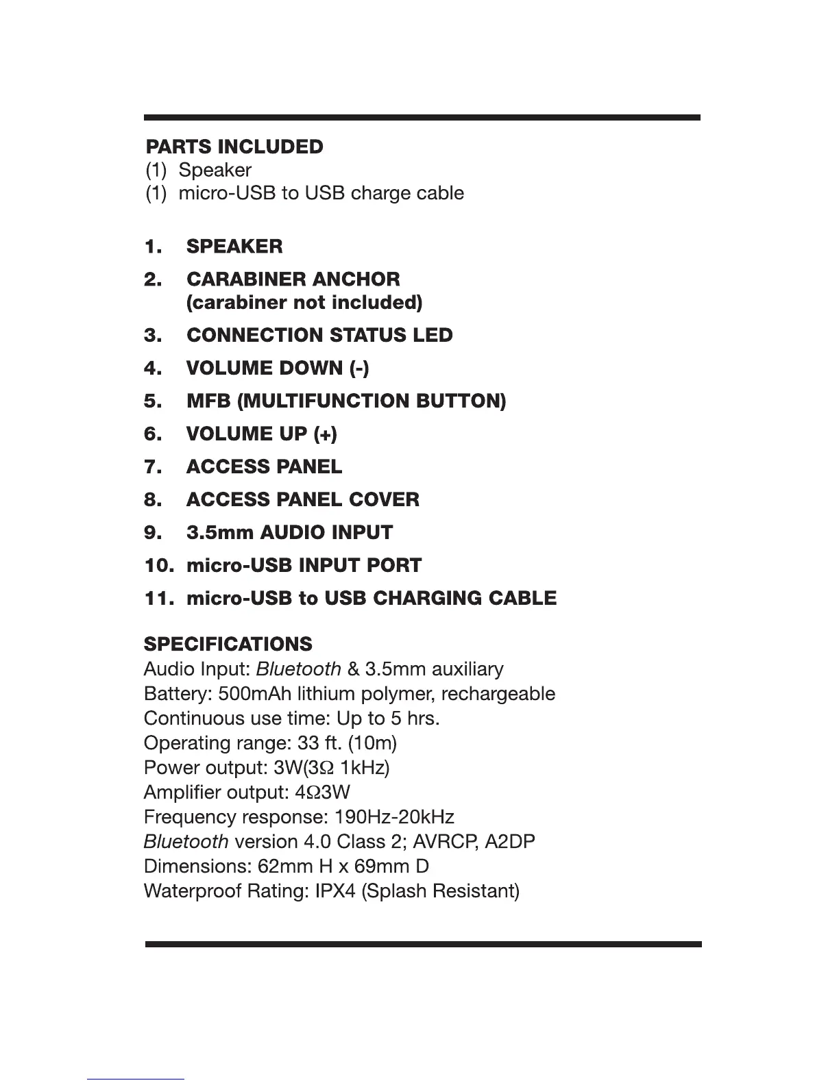 Scosche BTBTLM - Parts Included; Specifications