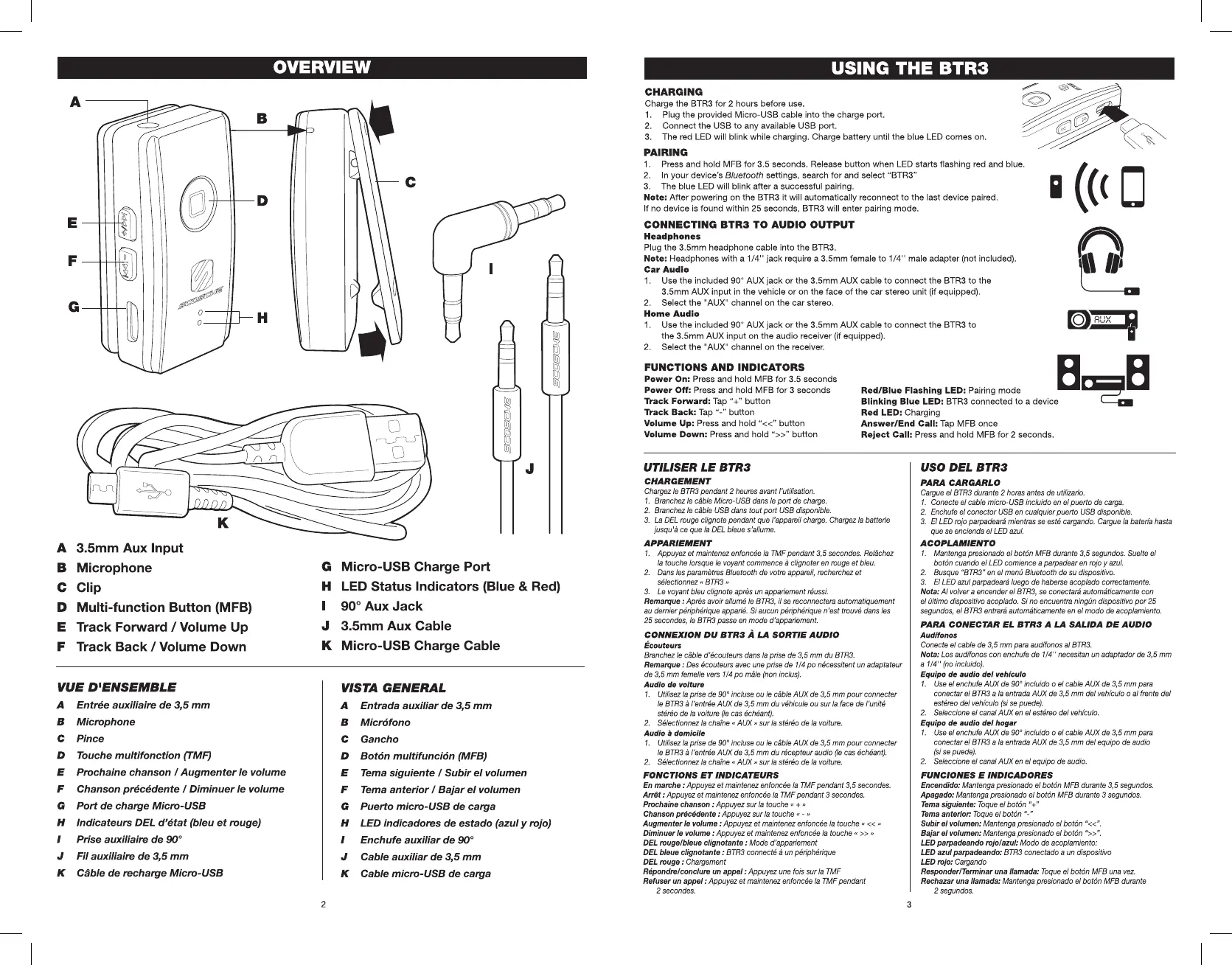 Scosche BTFREQ BTR3 - Product Overview; Device Components; Using the BTR3; Charging the Device