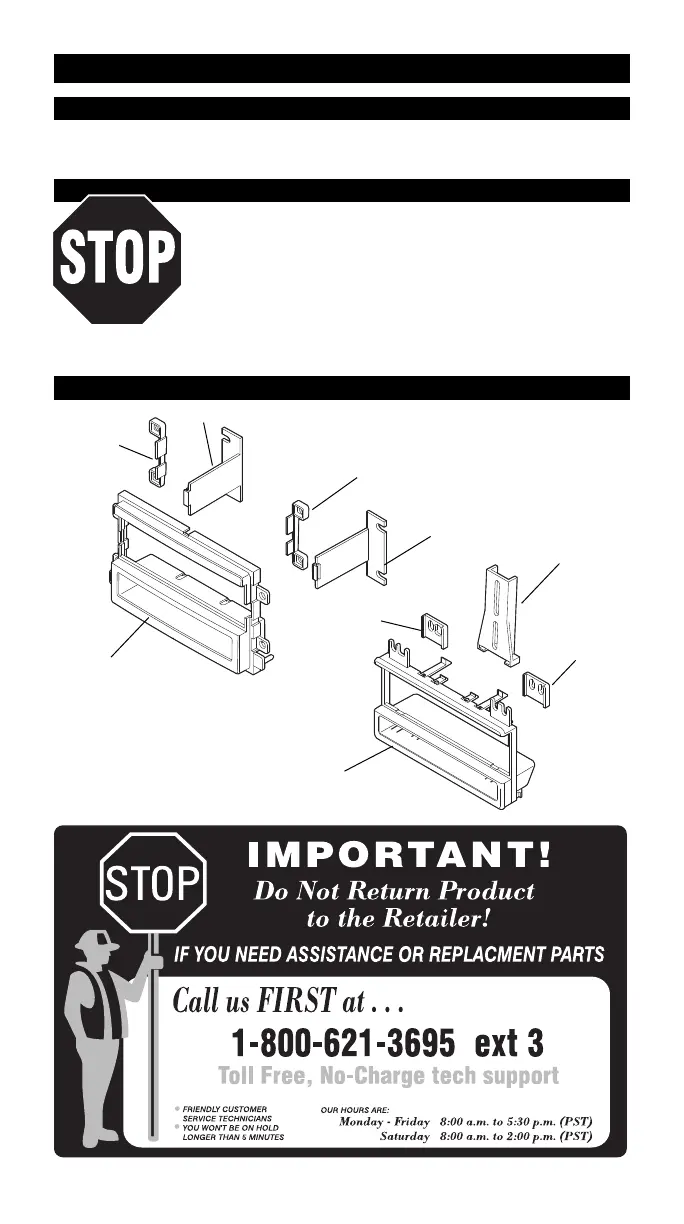 all the parts you need to mount your car stereo or CD player into your vehicle’s dash. Refer to the