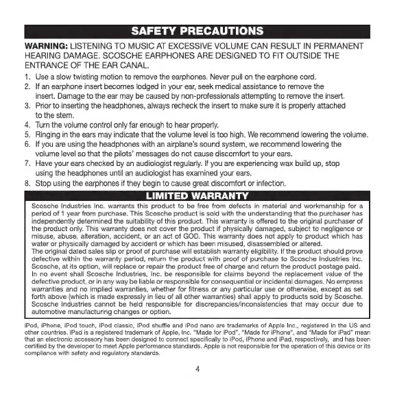 Scosche IDR656m - Afety Precautions; Limited Warranty