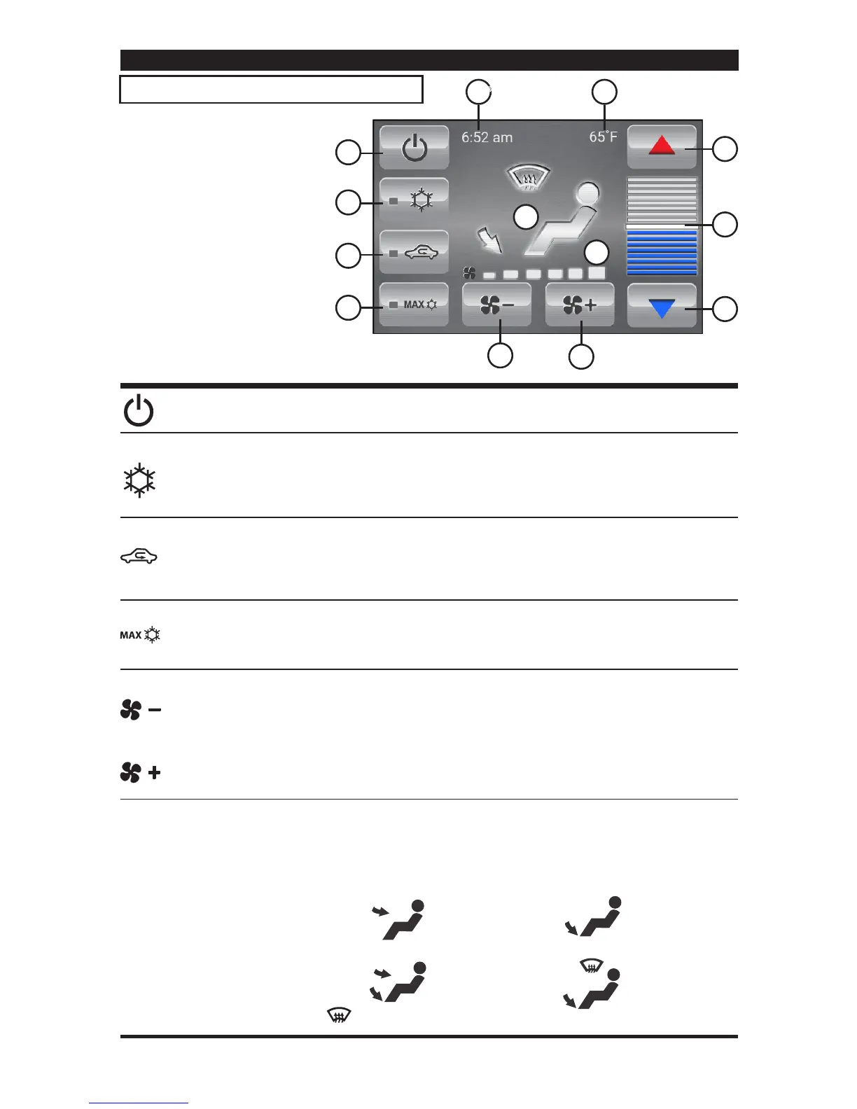 speed is set at maximum. MAX A/C is used to cool the car down as quickly as possible. Touch