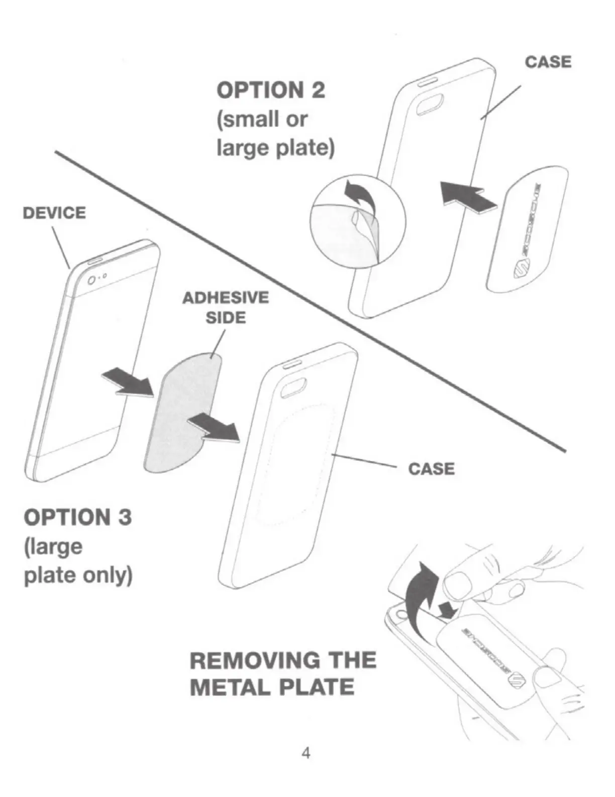 Scosche MAGICMOUNT PRO MPOHM - Option 2: Plate Attachment to Case; Option 3: Large Plate Attachment to Case; Removing the Metal Plate