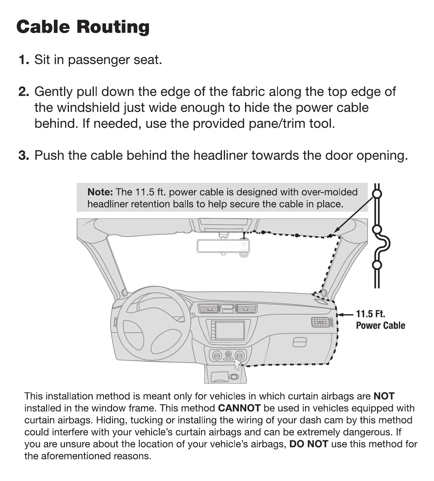 curtain airbags. Hiding, tucking or installing the wiring of your dash cam by this method