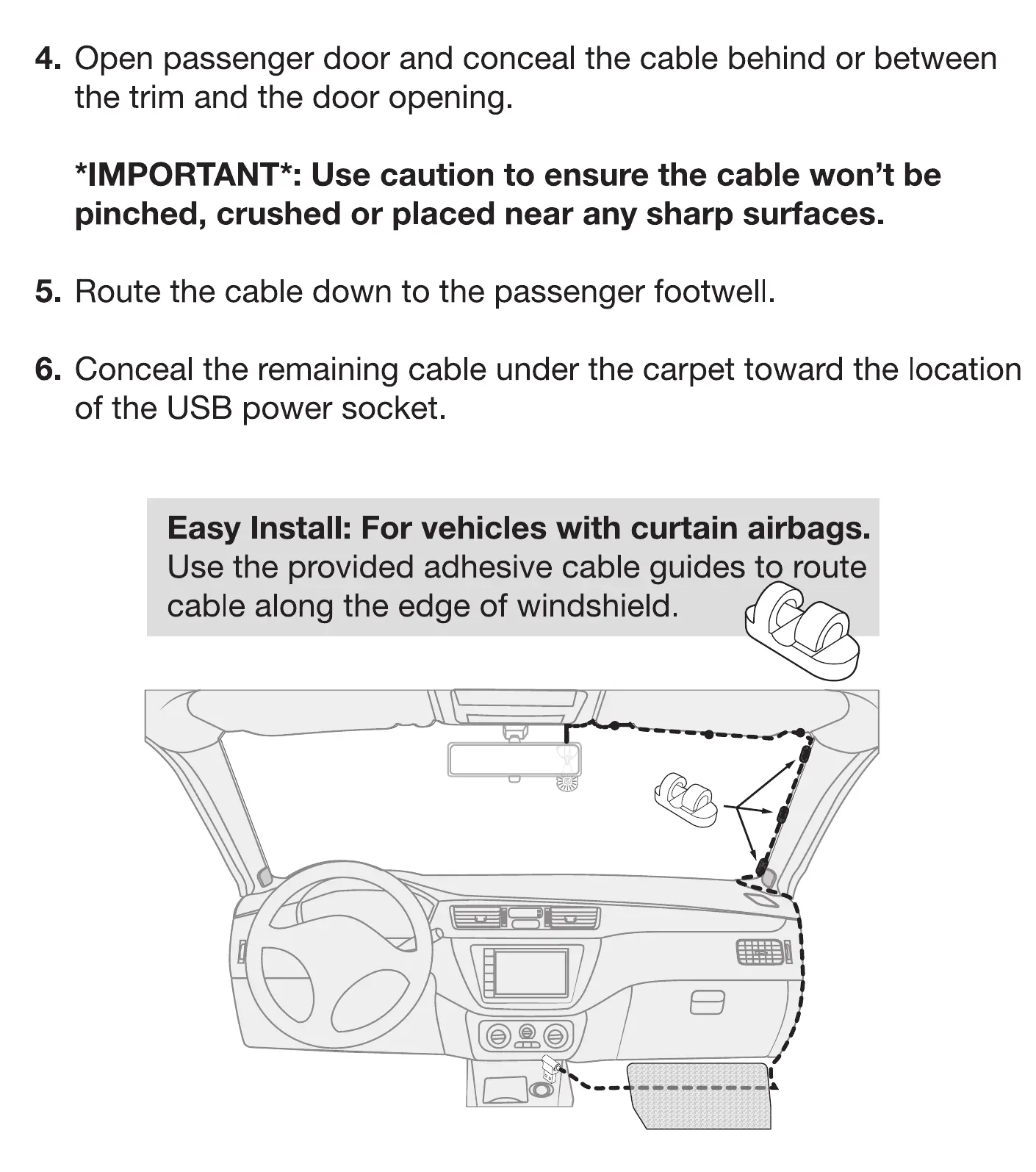 curtain airbags. Hiding, tucking or installing the wiring of your dash cam by this method
