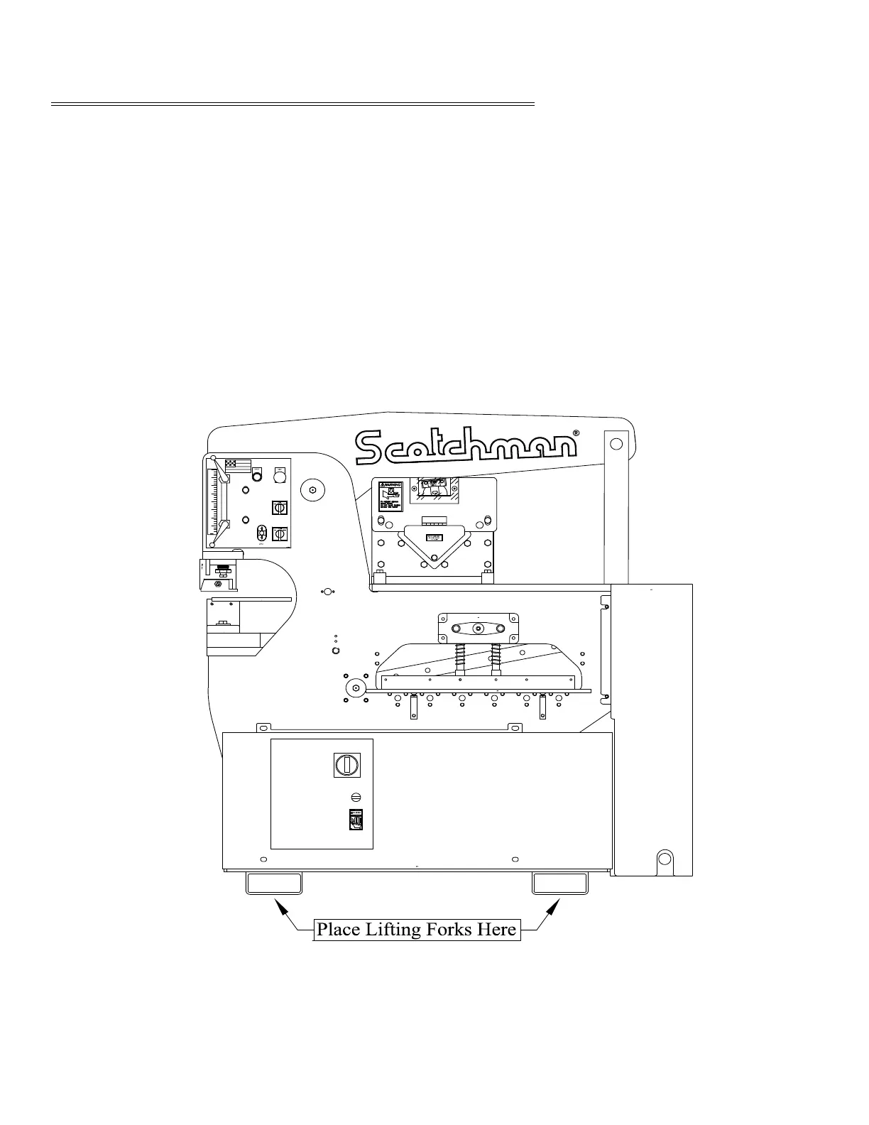 This is the quickest and safest means of moving the machine. The forks of the lift should be spread so