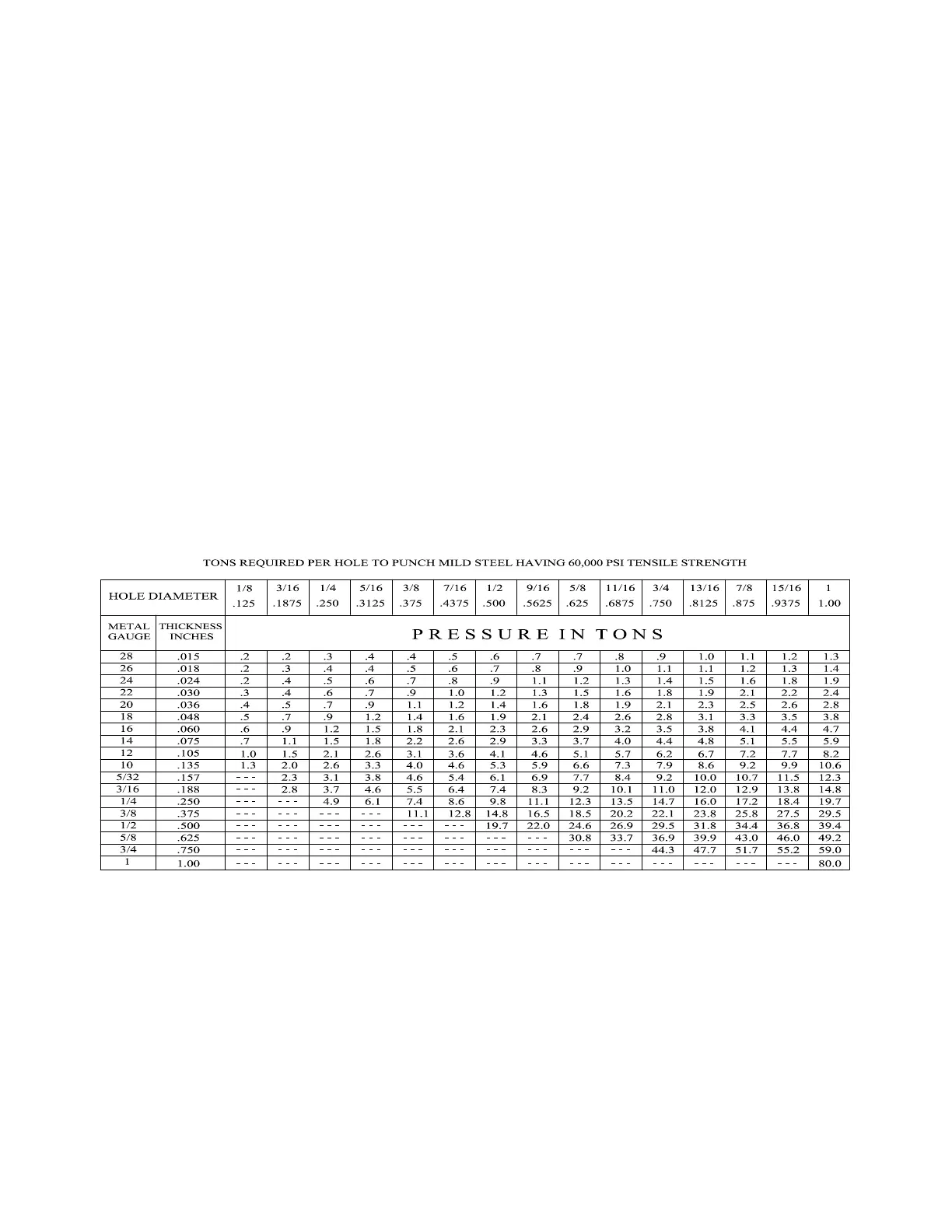 For capacities, REFER TO THE PUNCH TONNAGE CHART IN FIGURE 9 BELOW.