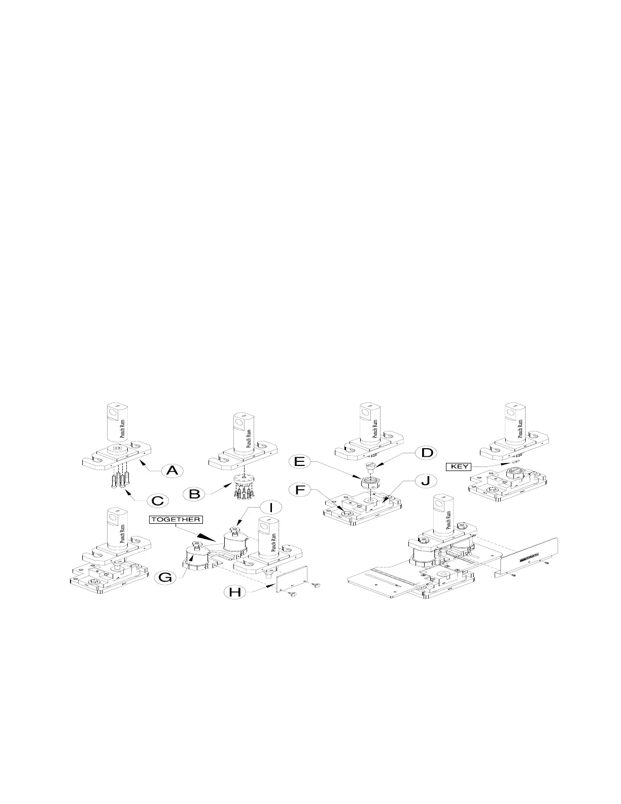 23. Power the machine and jog the ram down until the urethane stripper contacts the top of the die