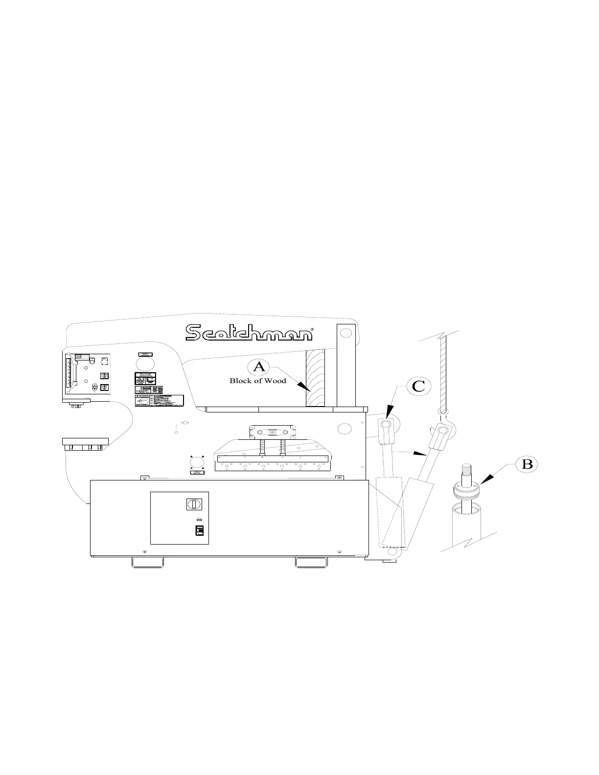 15. Use care removing the blocking device (A) from under the arms. Since the cylinder does not