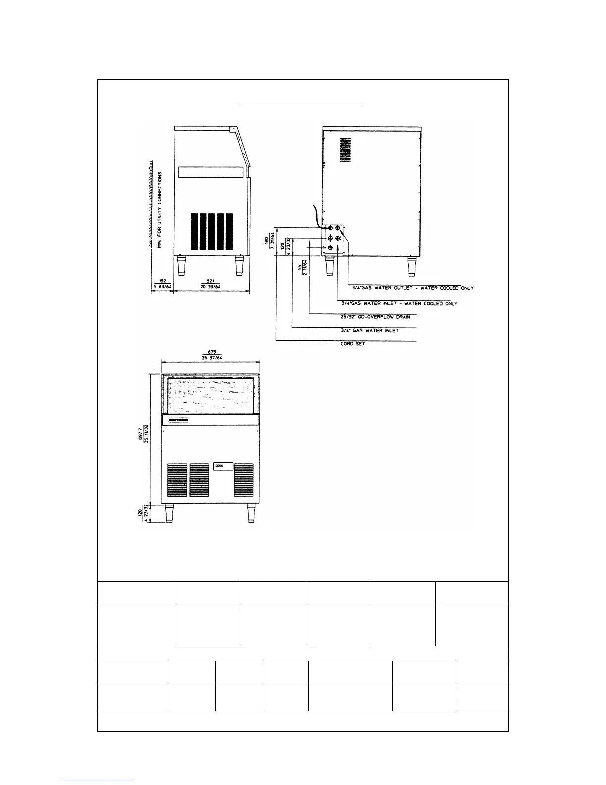 Ice bin cap. Water requirem