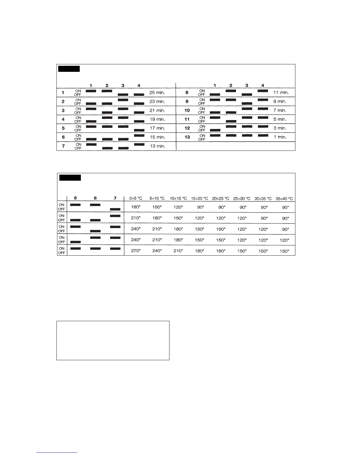 LENGTH OF DEFROST CYCLE (IN SEC.) ACCORDING TO THE