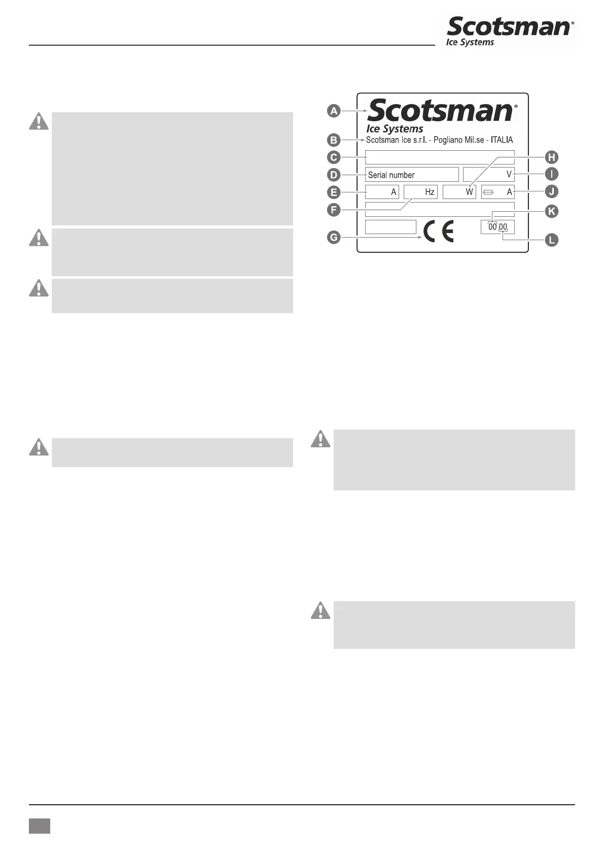 Scotsman Ice Srl - Gengivelse, selv delvis, er forbudt, hvis ikke autoriseret. 13