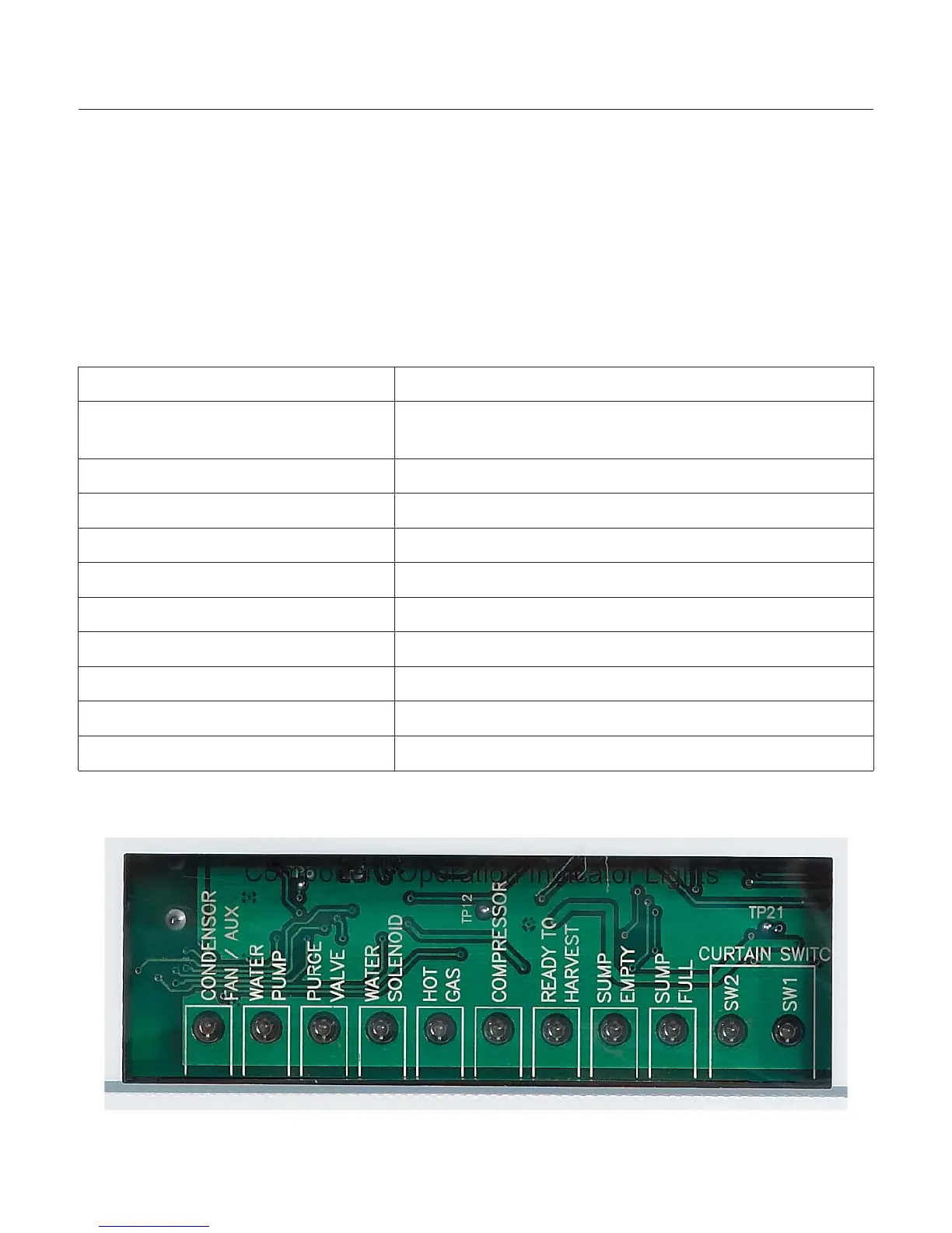 Component Indicator Light Table