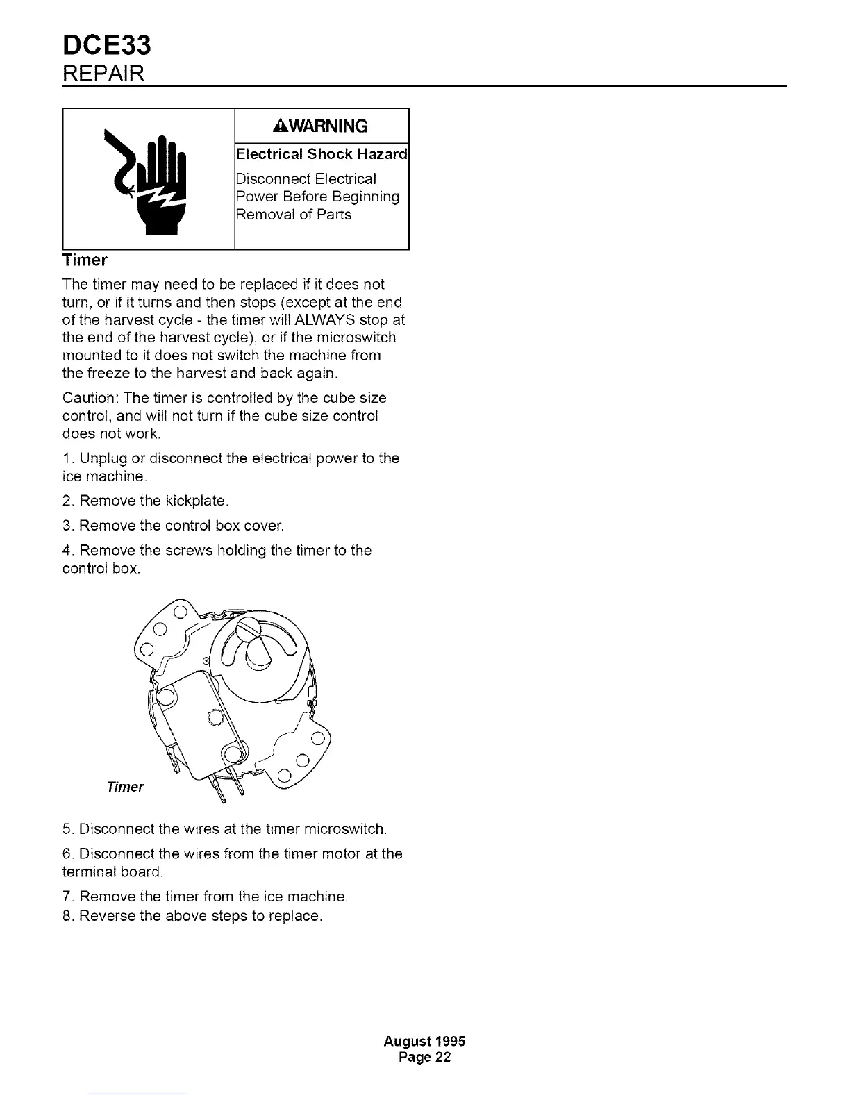 7. Remove the timer from the ice machine.