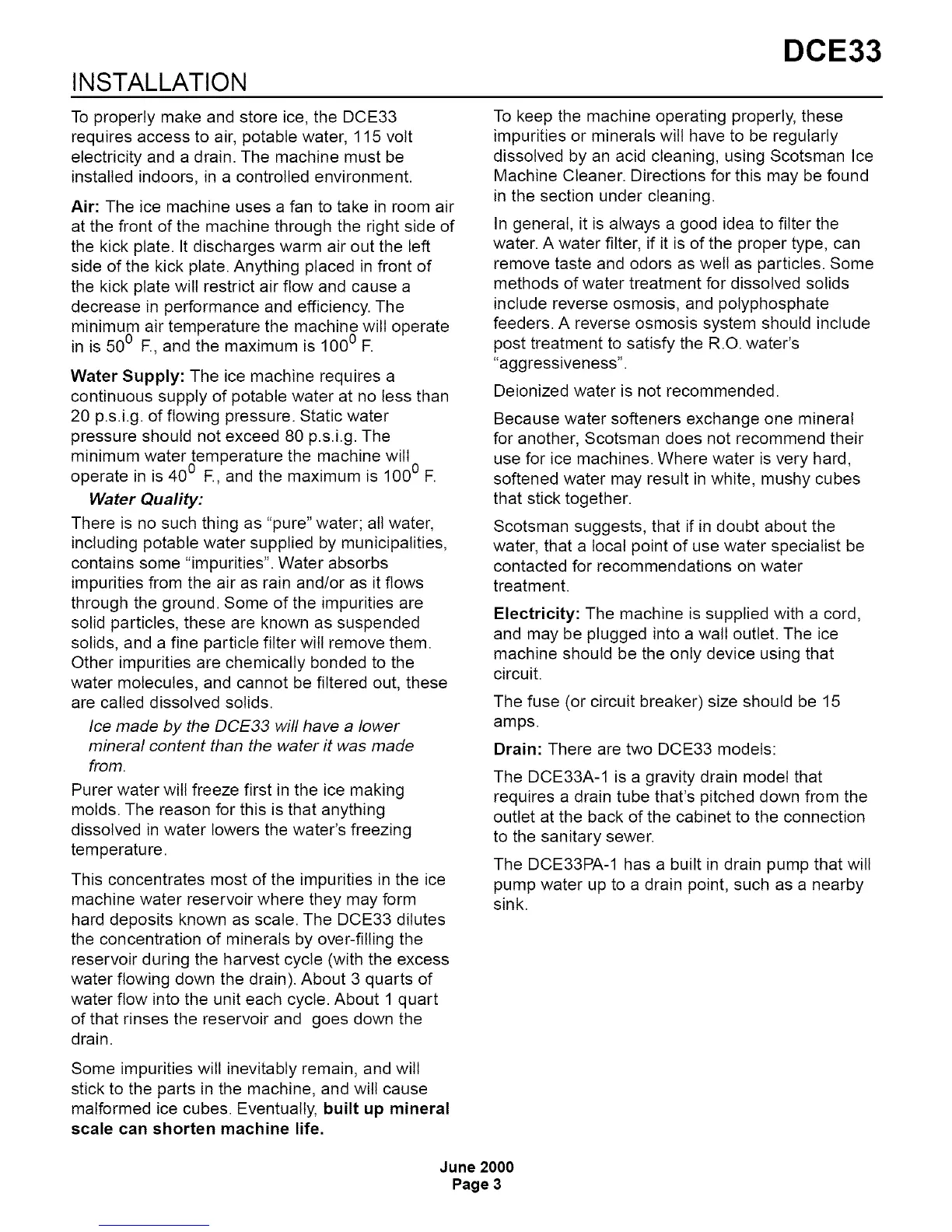 hard deposits known as scale. The DCE33 dilutes