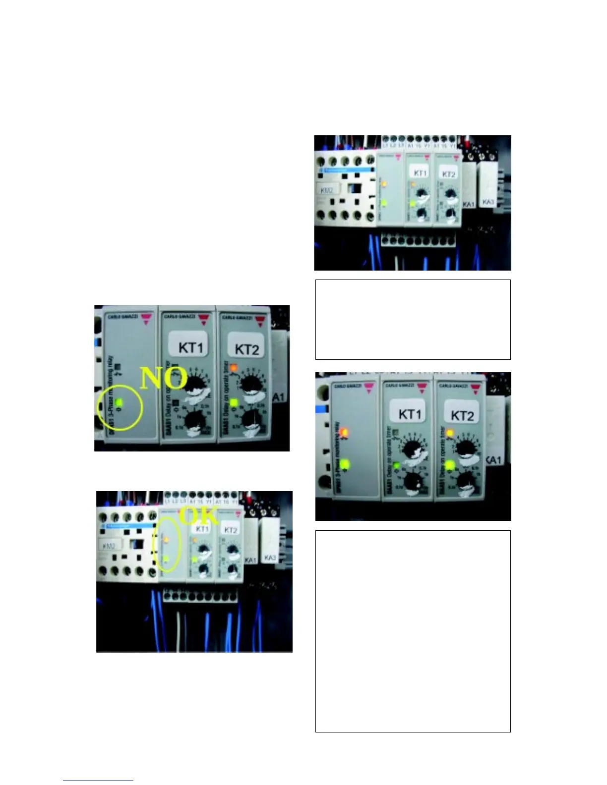 KT2 delay relay LEDs steady ON (orange