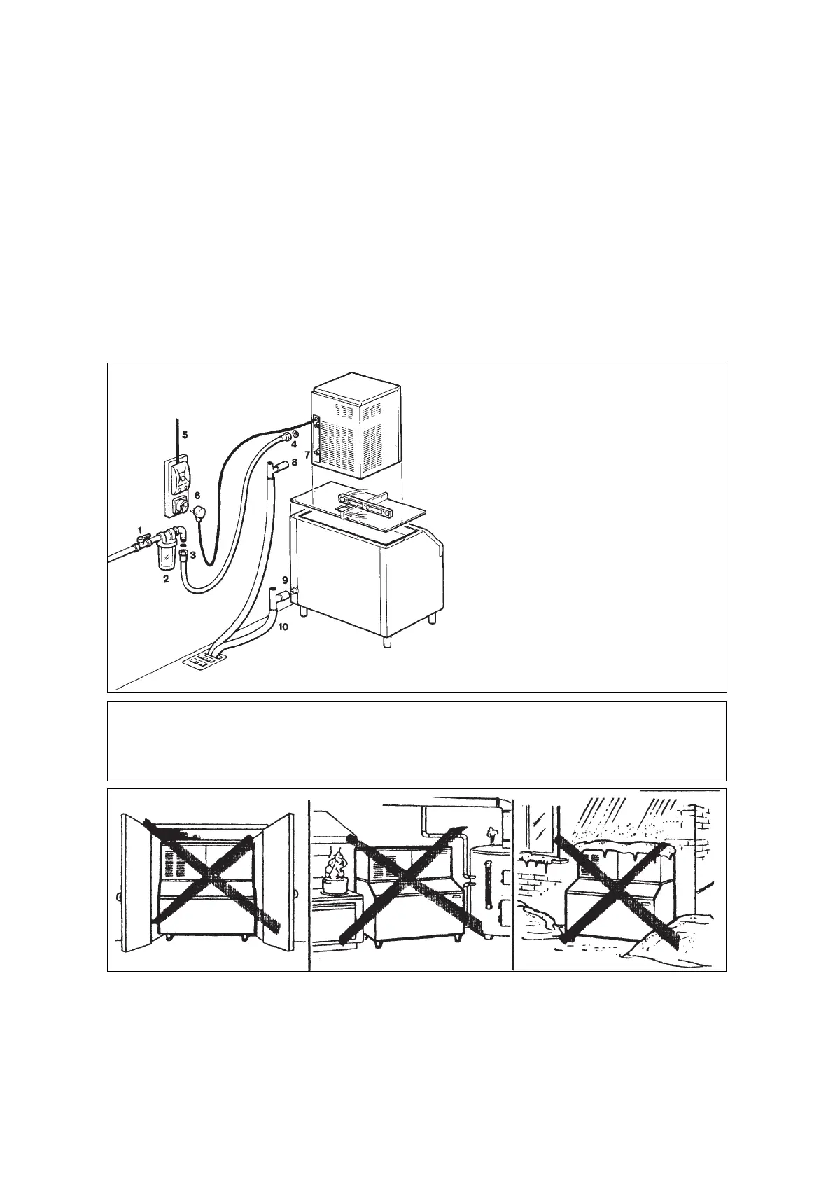 WARNING. This icemaker is not designed for outdoor installation and will not function in