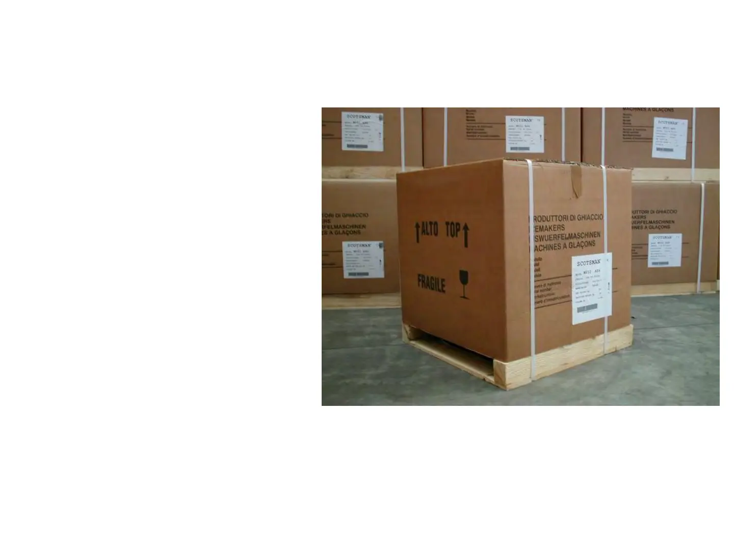 in a carton box secured by