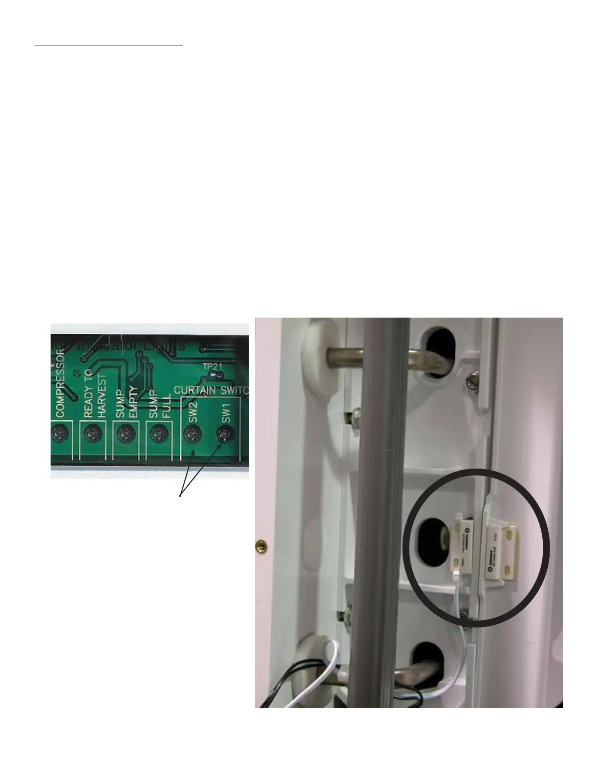 2. Test with an ohmmeter. Disconnect electrical power. Open the control box cover. Unplug the curtain switch