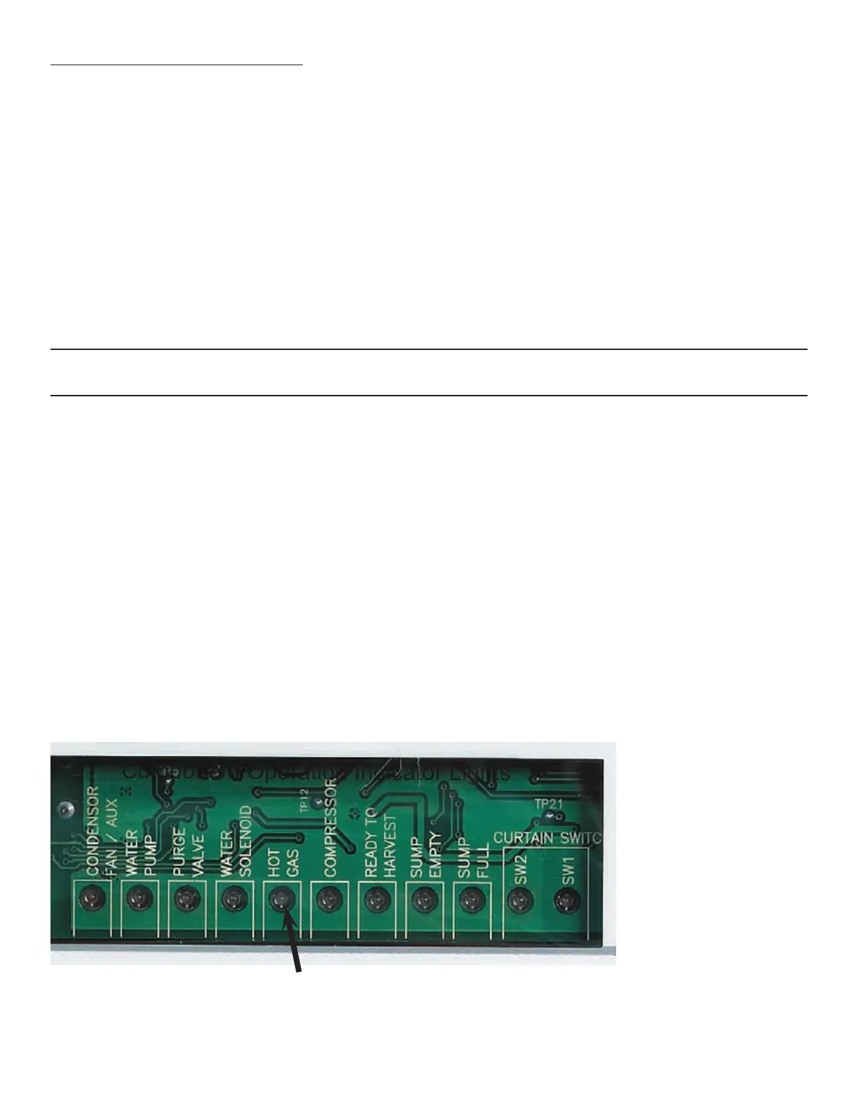 and release the Harvest button. The Hot Gas indicator light will be on and the hot gas valve will be energized.