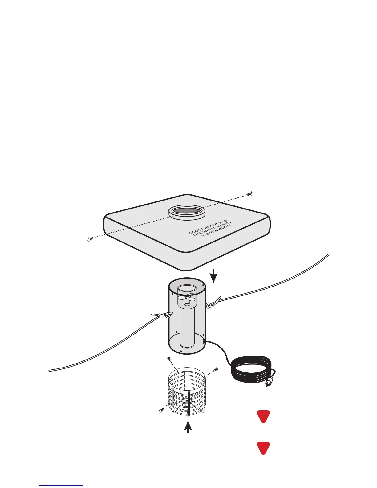 2. Place pump assembly on end, propeller side facing up. Slip the oat platform, with the Scott Aerator name and phone