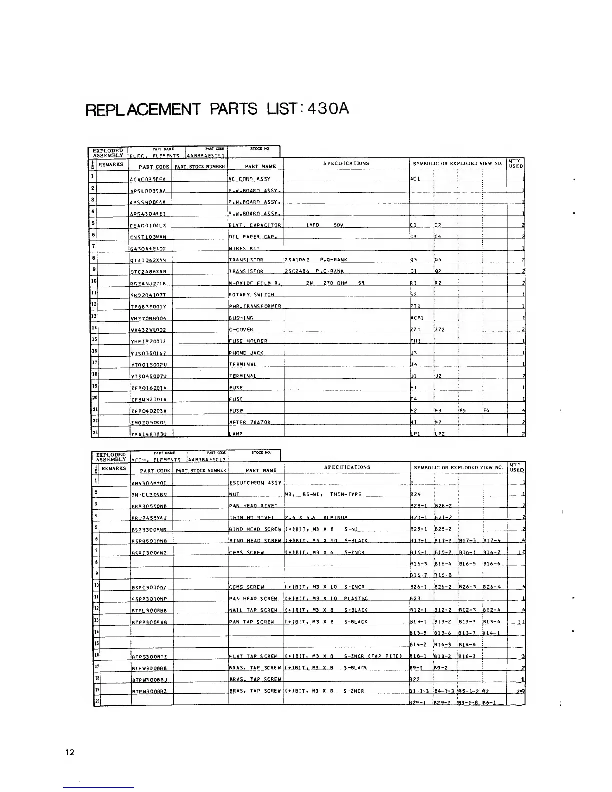 PARTS LIST: