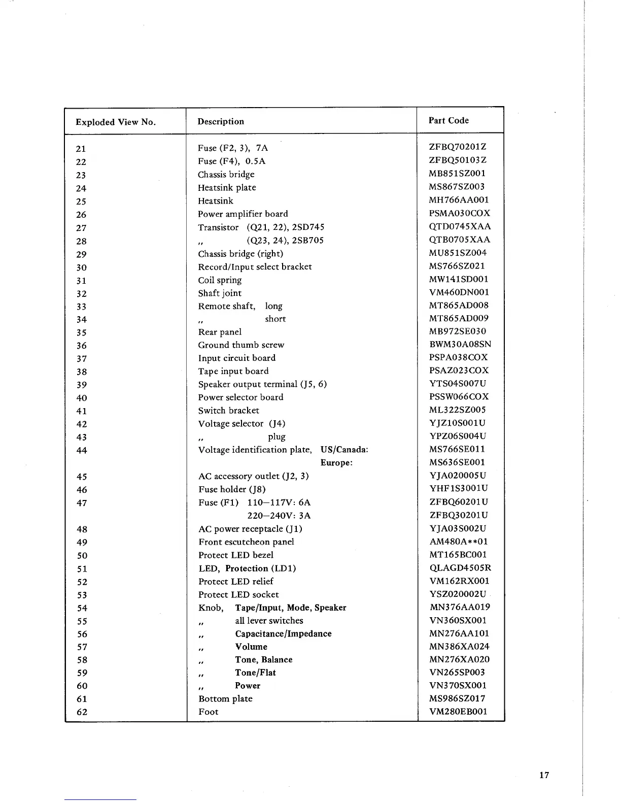SCOTT 480A - Circuit Board Parts Breakdown; Power Amplifier Board Parts; Preamplifier Board Parts