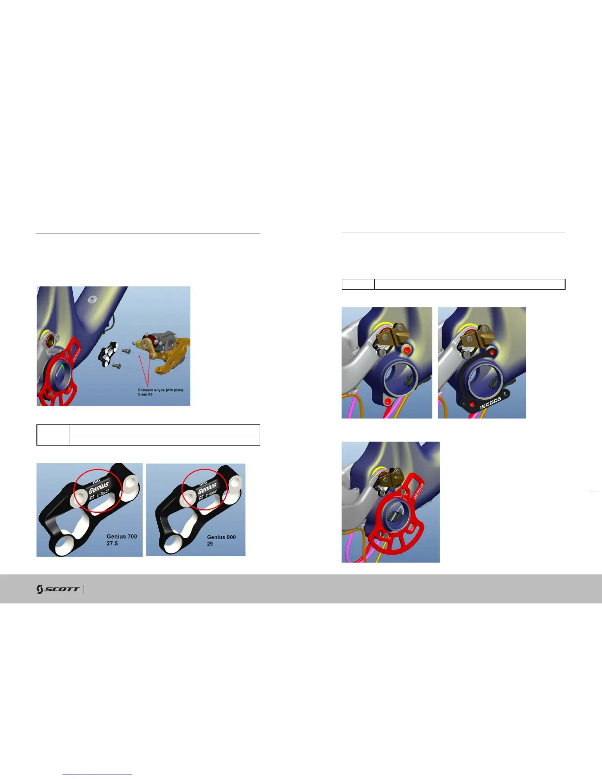 On all Genius frames you will find a Shimano E-type front derailleur but fixed directly