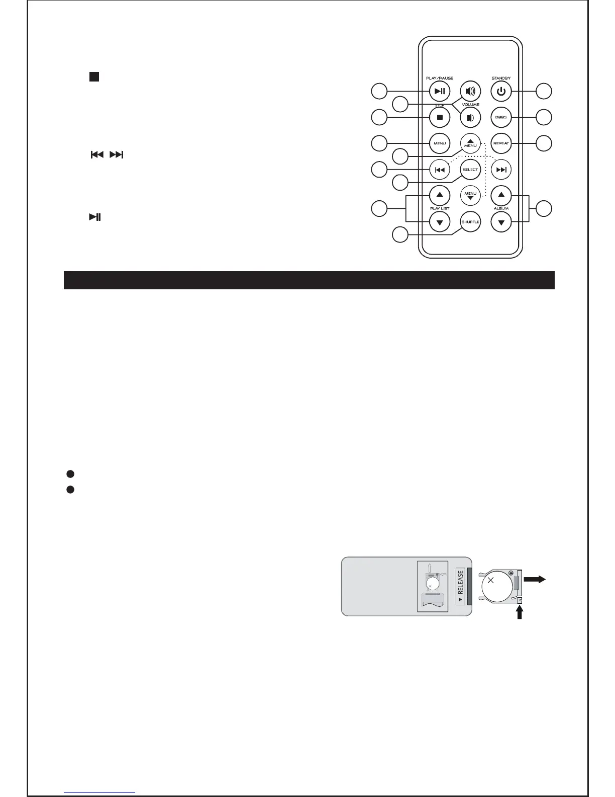 Note: The remote control battery normally lasts for about one year, although it